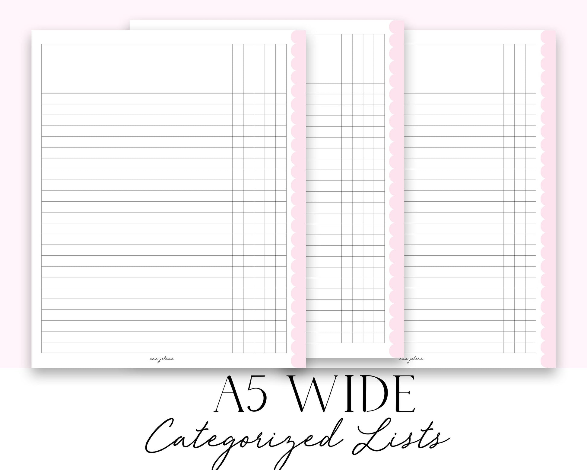 PDF File format - Inbox/Checklist in 5, 4 and 3 column options