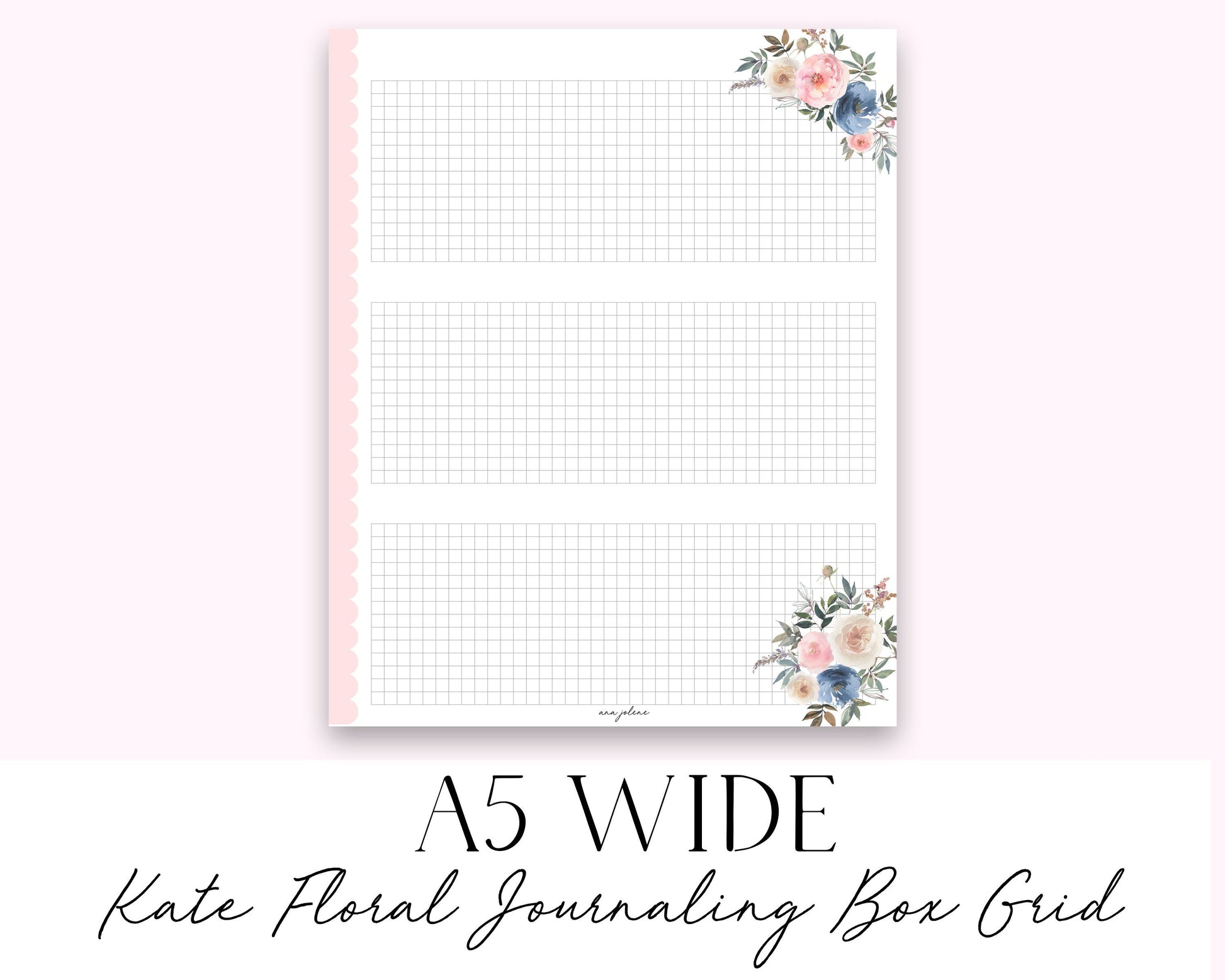 A5 Wide Kate Floral Journaling Box Grid Printable