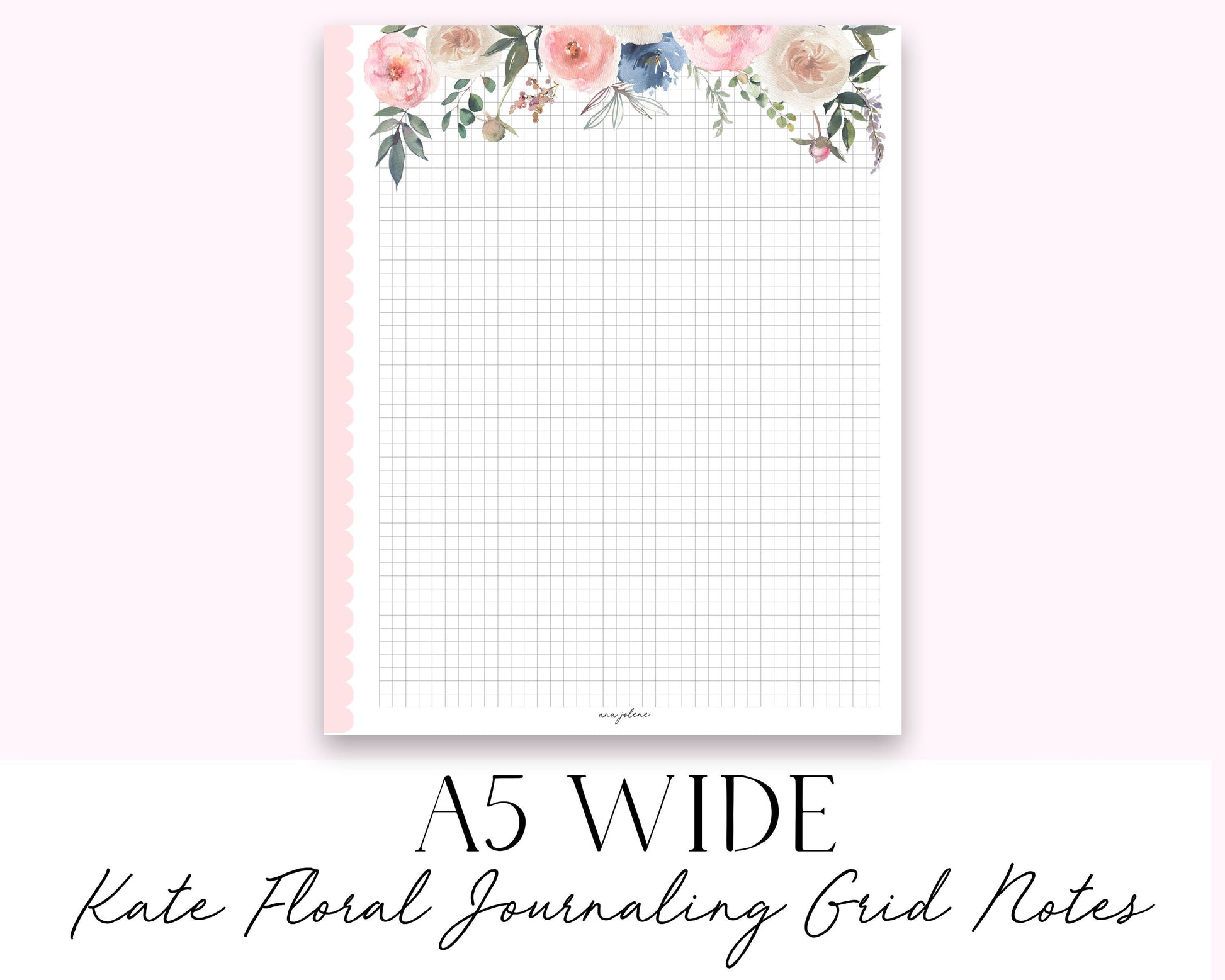 A5 Wide Kate Floral Journaling Grid Notes Printable