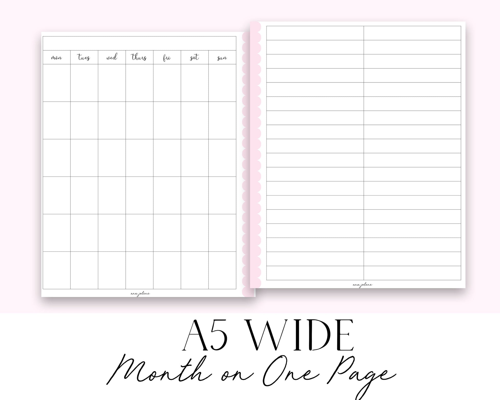 A5 Wide Month on One Page Printable
