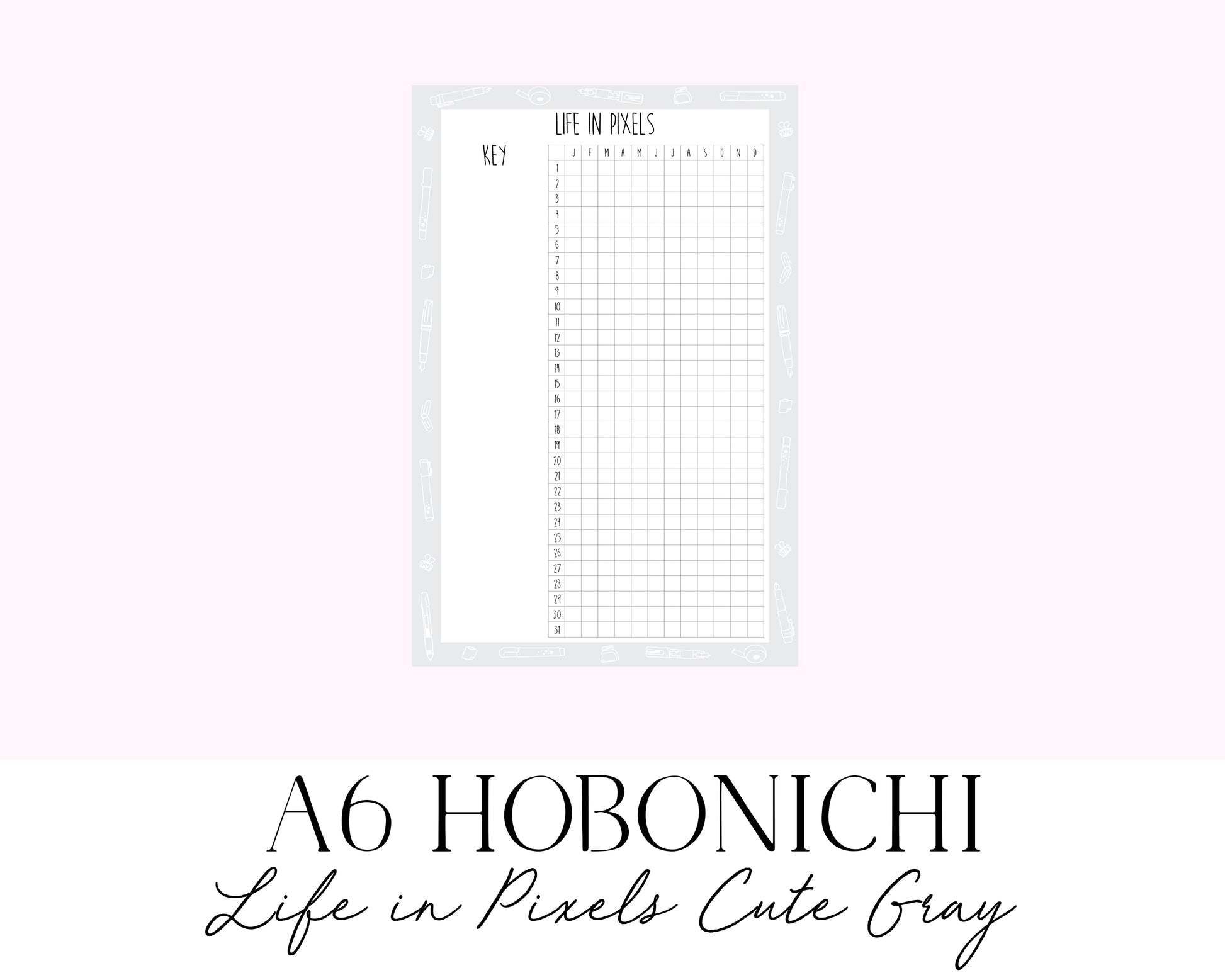 A6 Hobonichi Life in Pixels/Mood Tracker Cute Gray (Full Page Printable Stickers)
