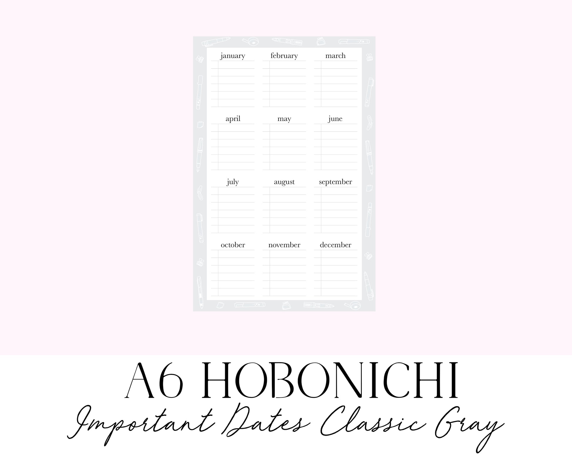 A6 Hobonichi Important Dates Classic Gray (Full Page Printable Stickers)