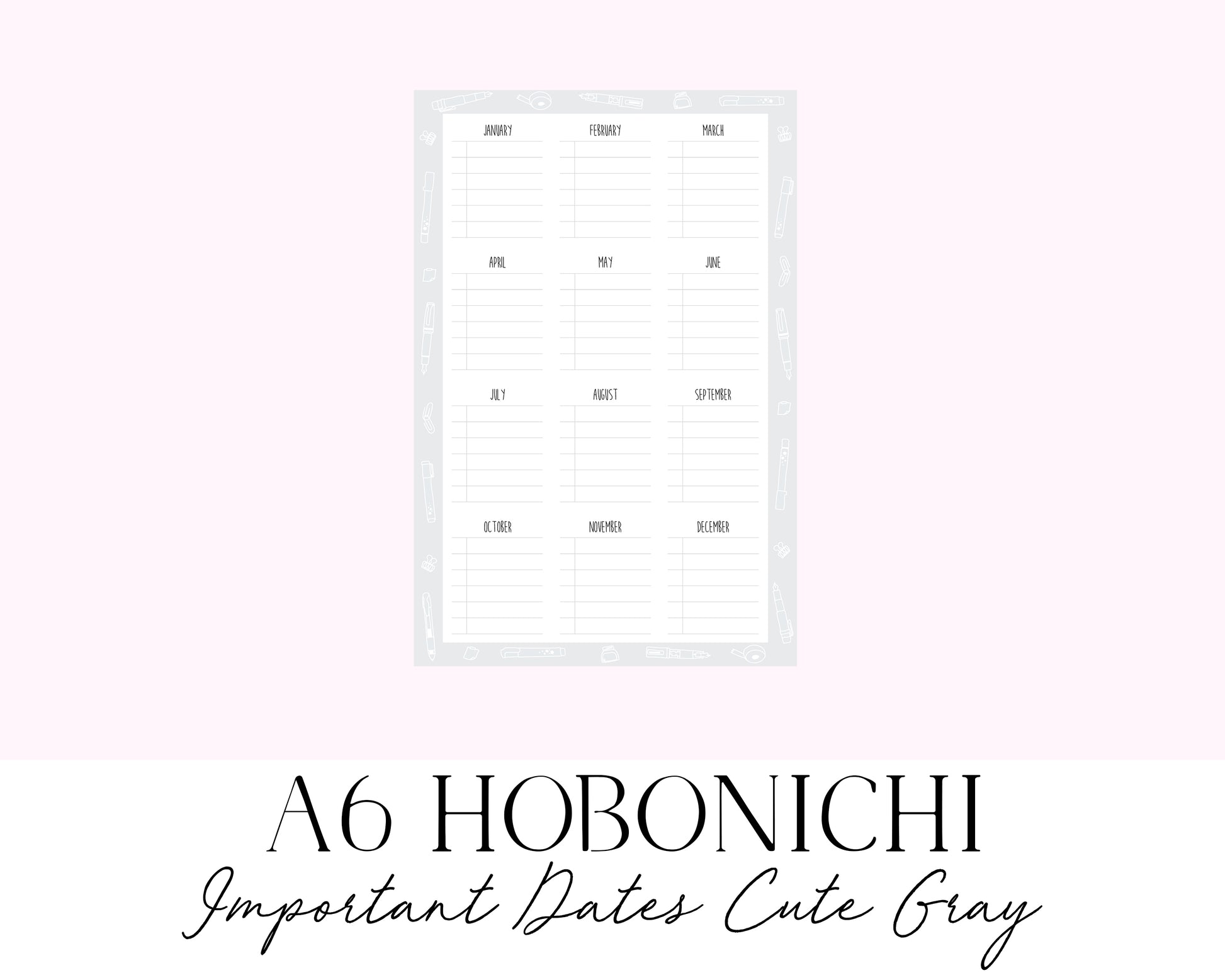 A6 Hobonichi Important Dates Cute Gray (Full Page Printable Stickers)