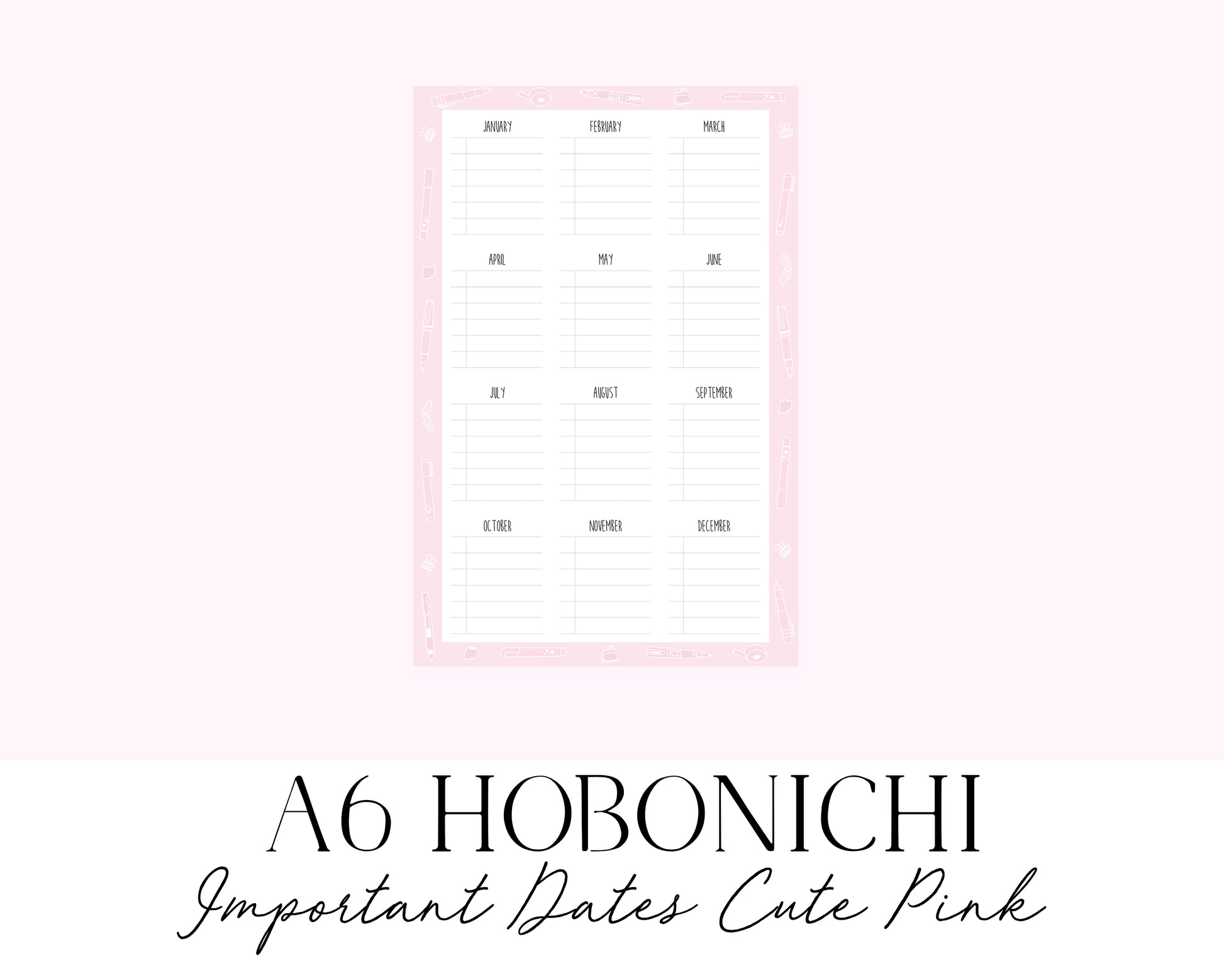 A6 Hobonichi Important Dates Cute Pink (Full Page Printable Stickers)