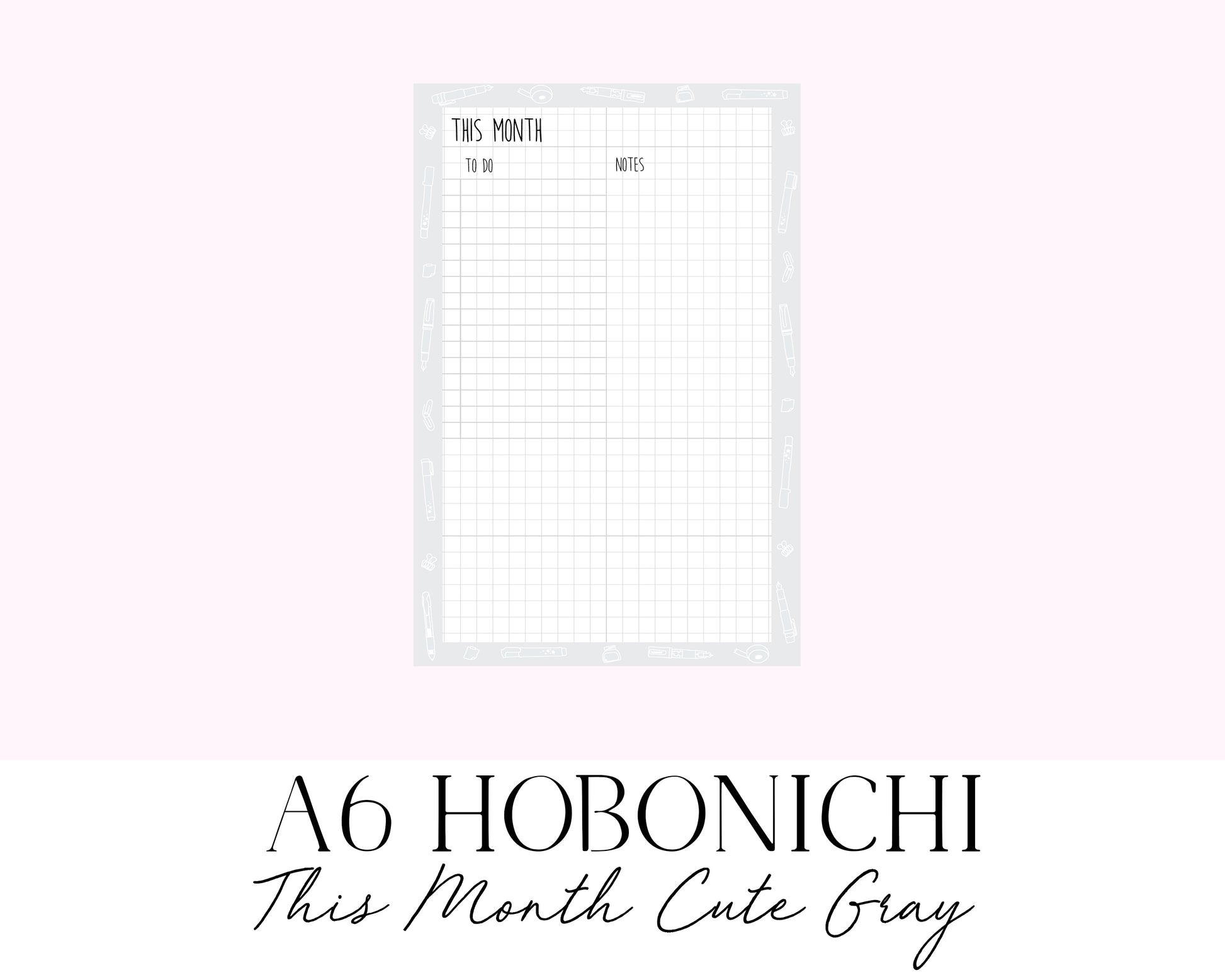 A6 Hobonichi This Month Cute Gray (Full Page Printable Stickers)