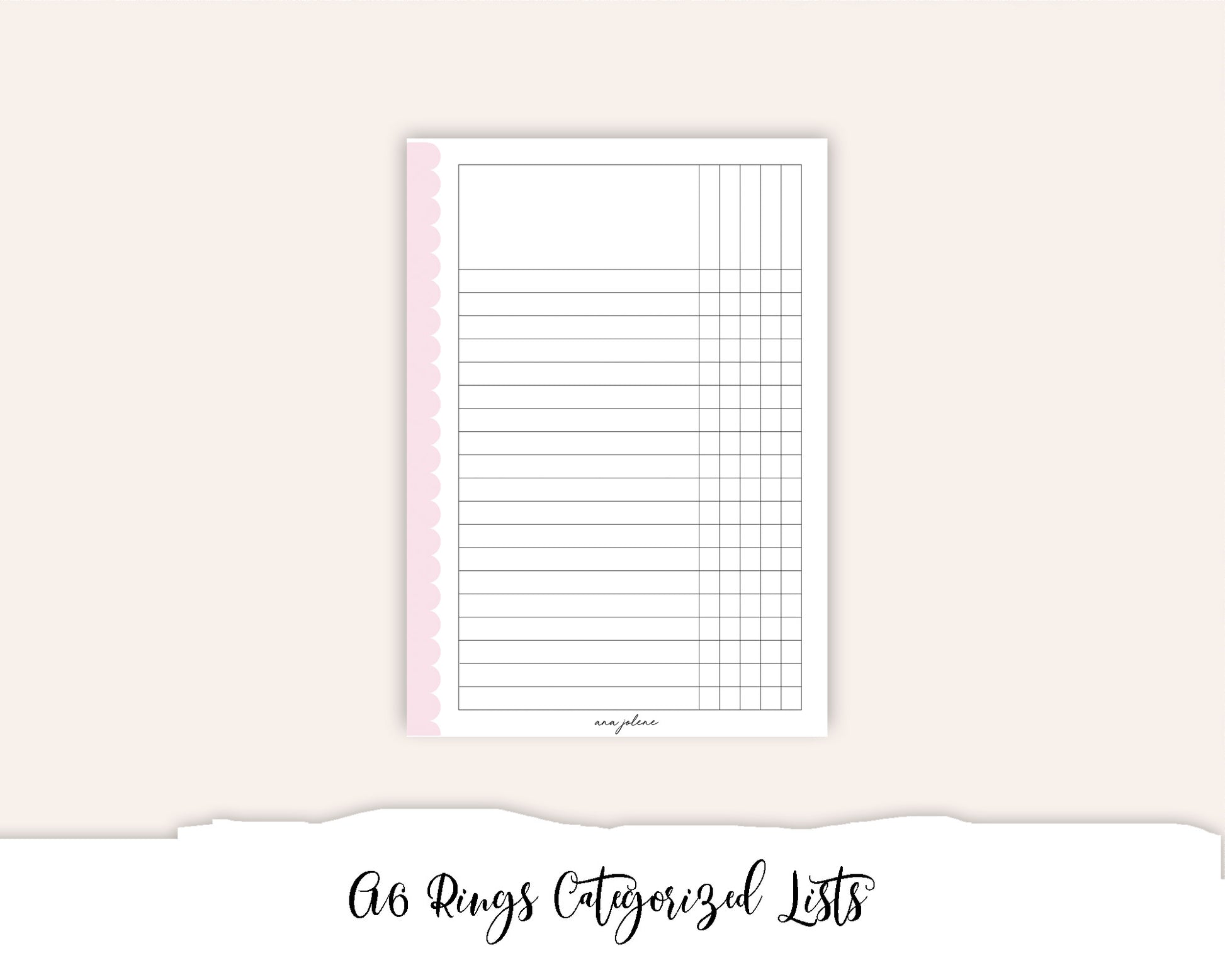 A6 Rings Categorized Lists Tracker Checklist Printable