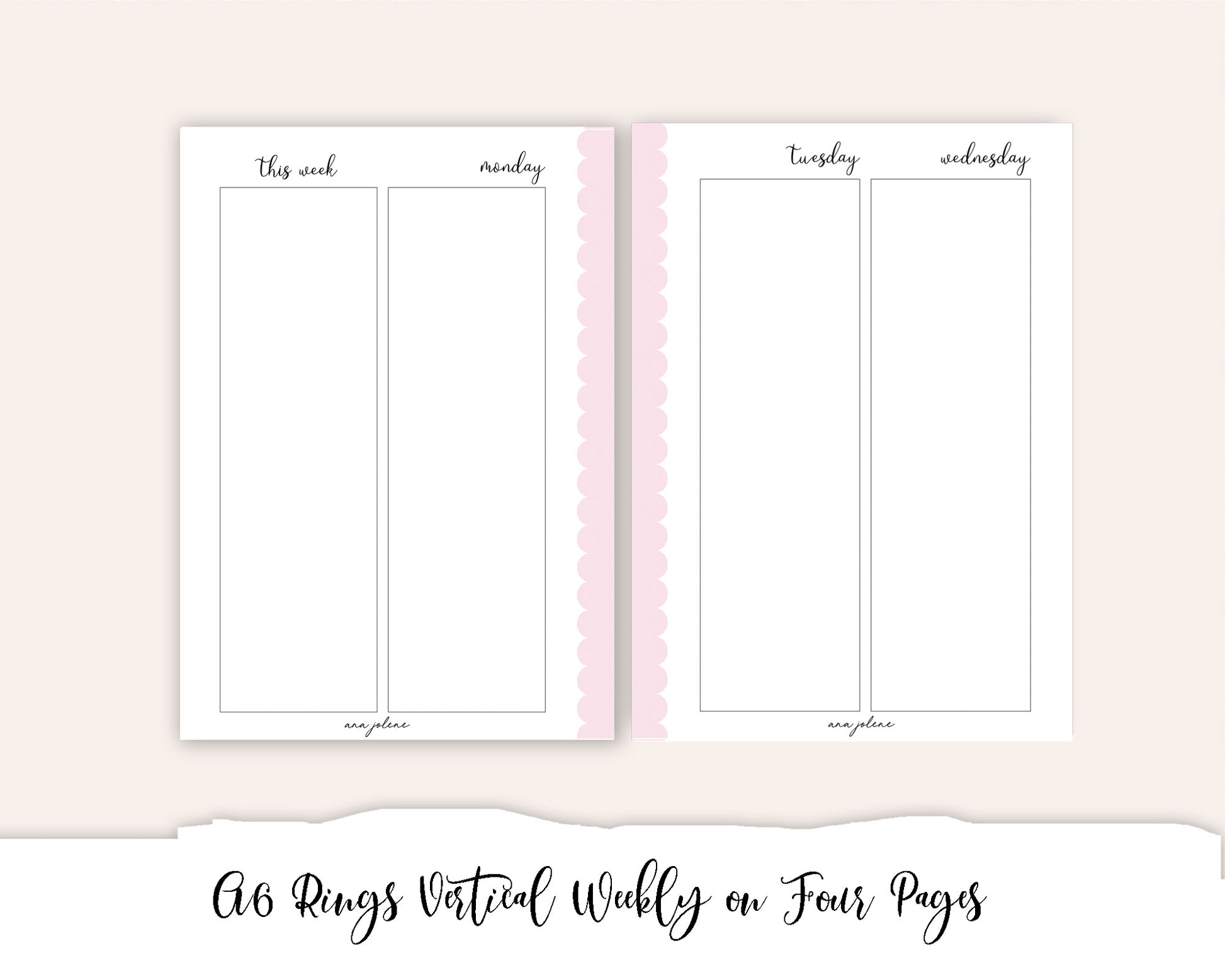 A6 Rings Vertical Weekly on 4 Pages Printable