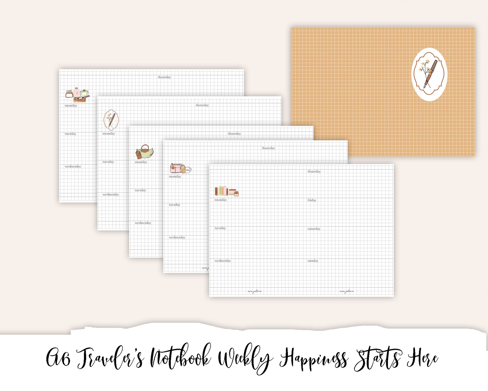 A6 Traveler's Notebook Printable - Weekly Happiness Starts Here