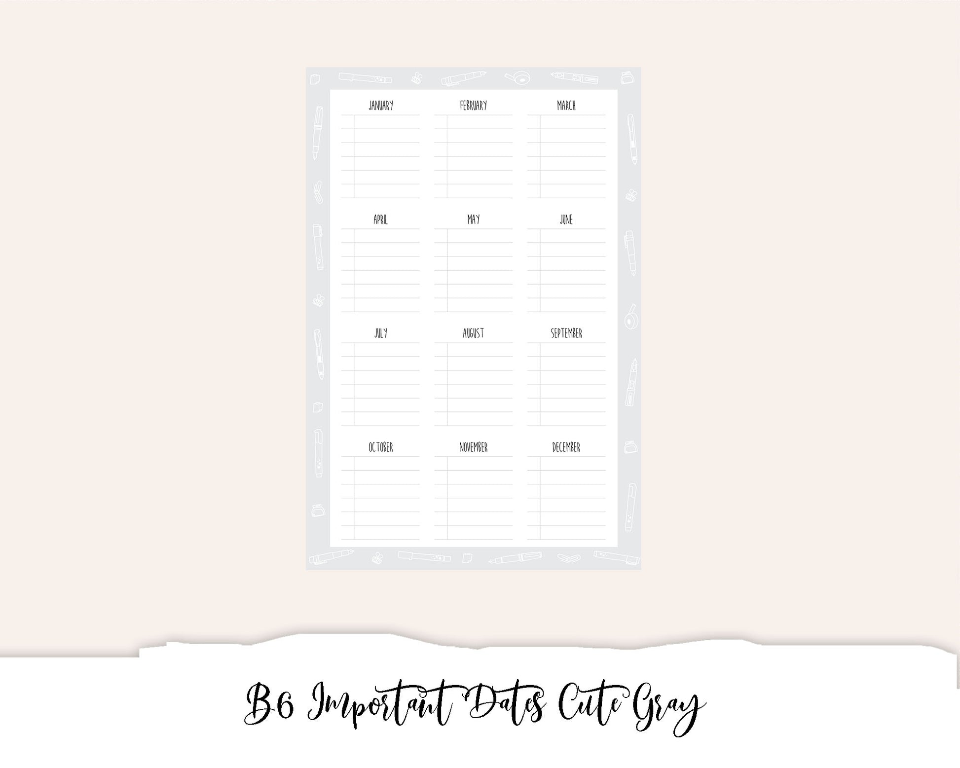 B6 Important Dates Cute Gray (Full Page Printable Stickers)