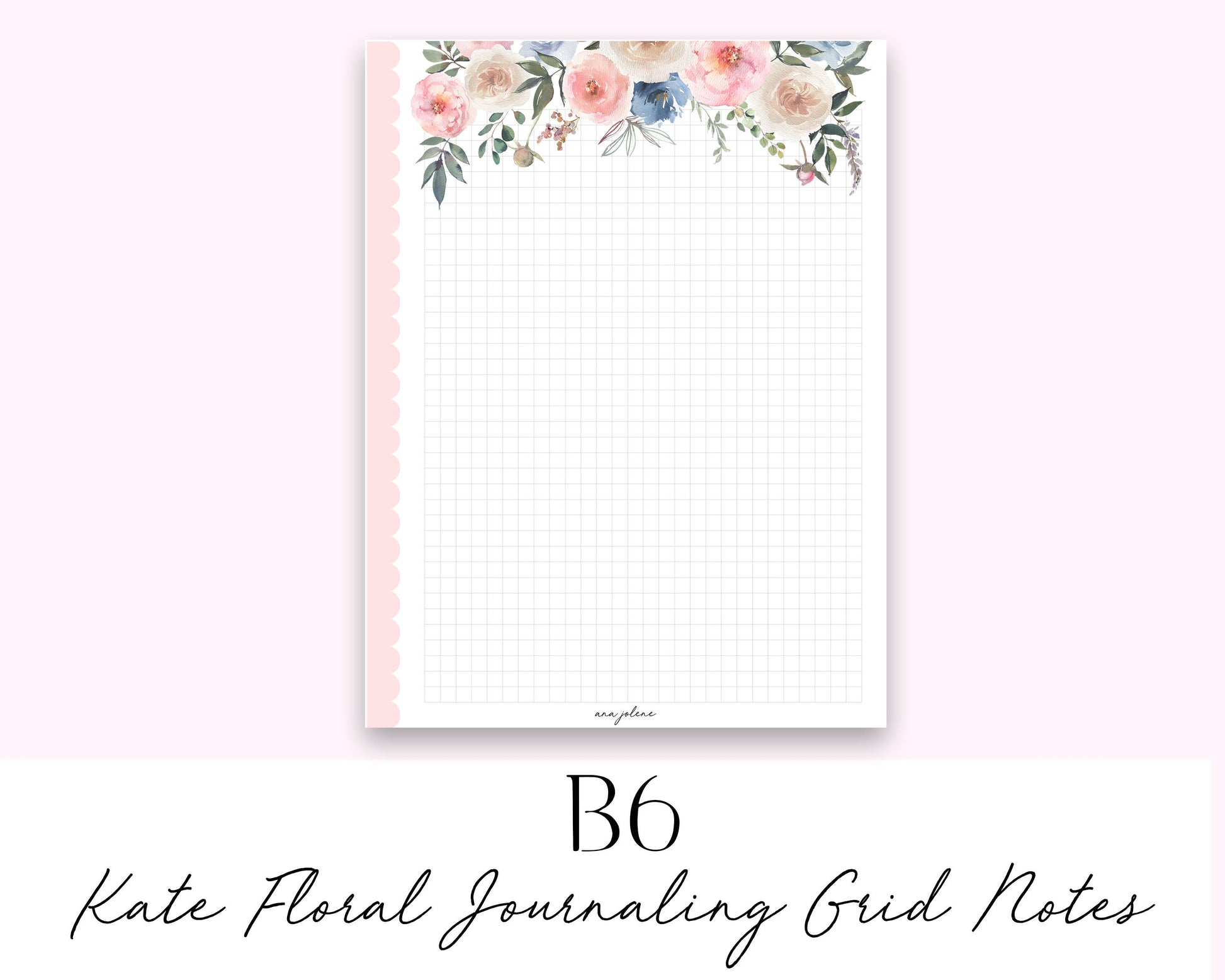 B6 Rings Kate Floral Journaling Grid Notes Printable