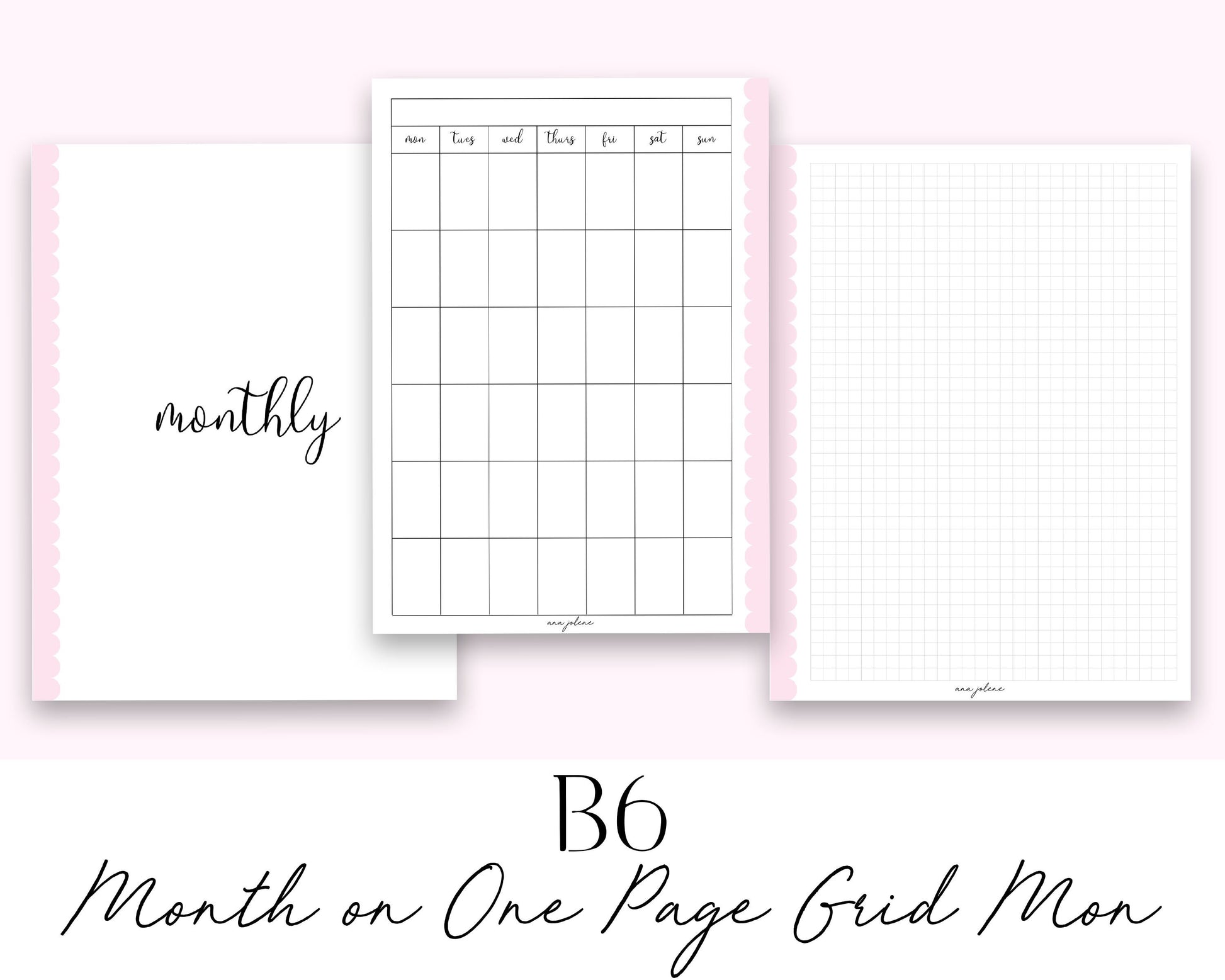 B6 Rings Month on One Page Grid MON start Printable