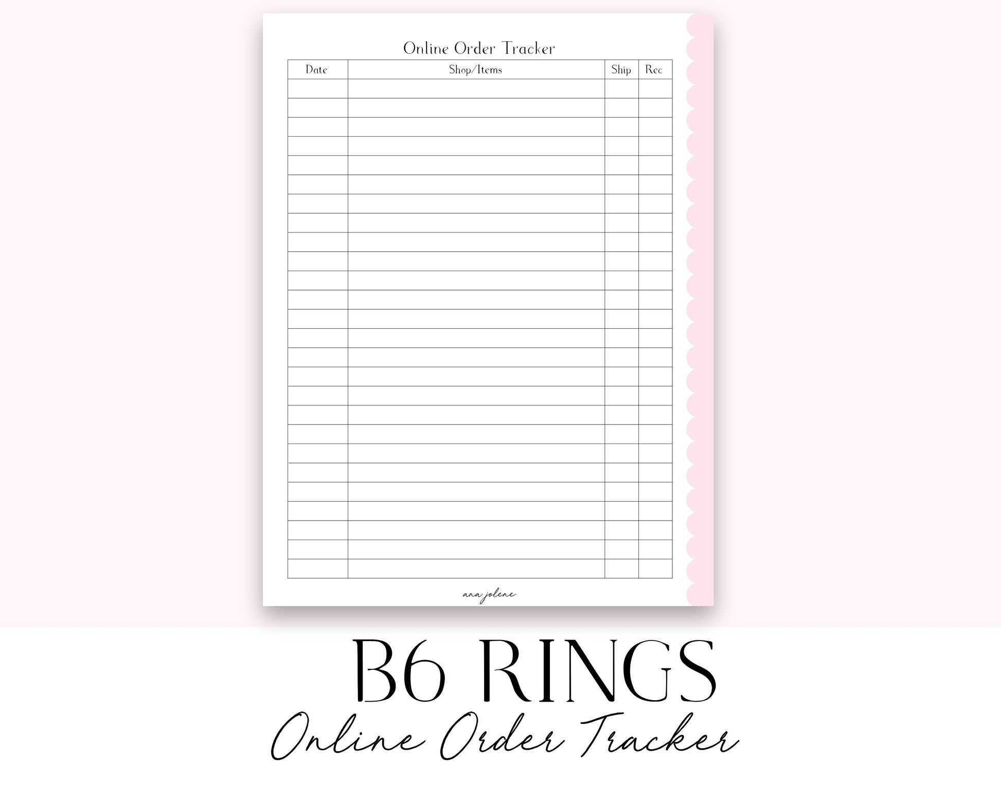 B6 Rings Online Order Tracker (Budget) (Finance Planner) Printable