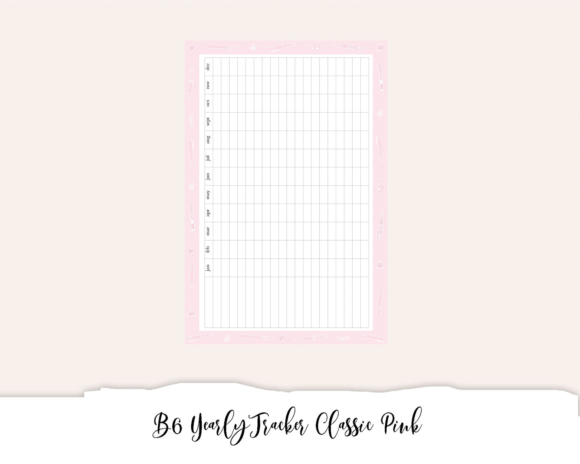 B6 Yearly Tracker Classic Pink (Full Page Printable Stickers)