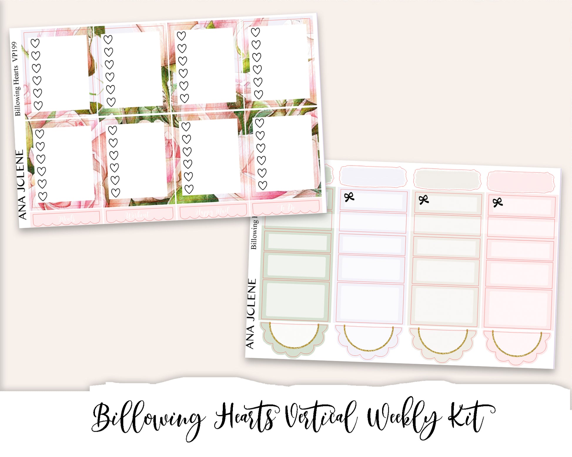BILLOWING HEARTS Planner Sticker Kit (Vertical Weekly)