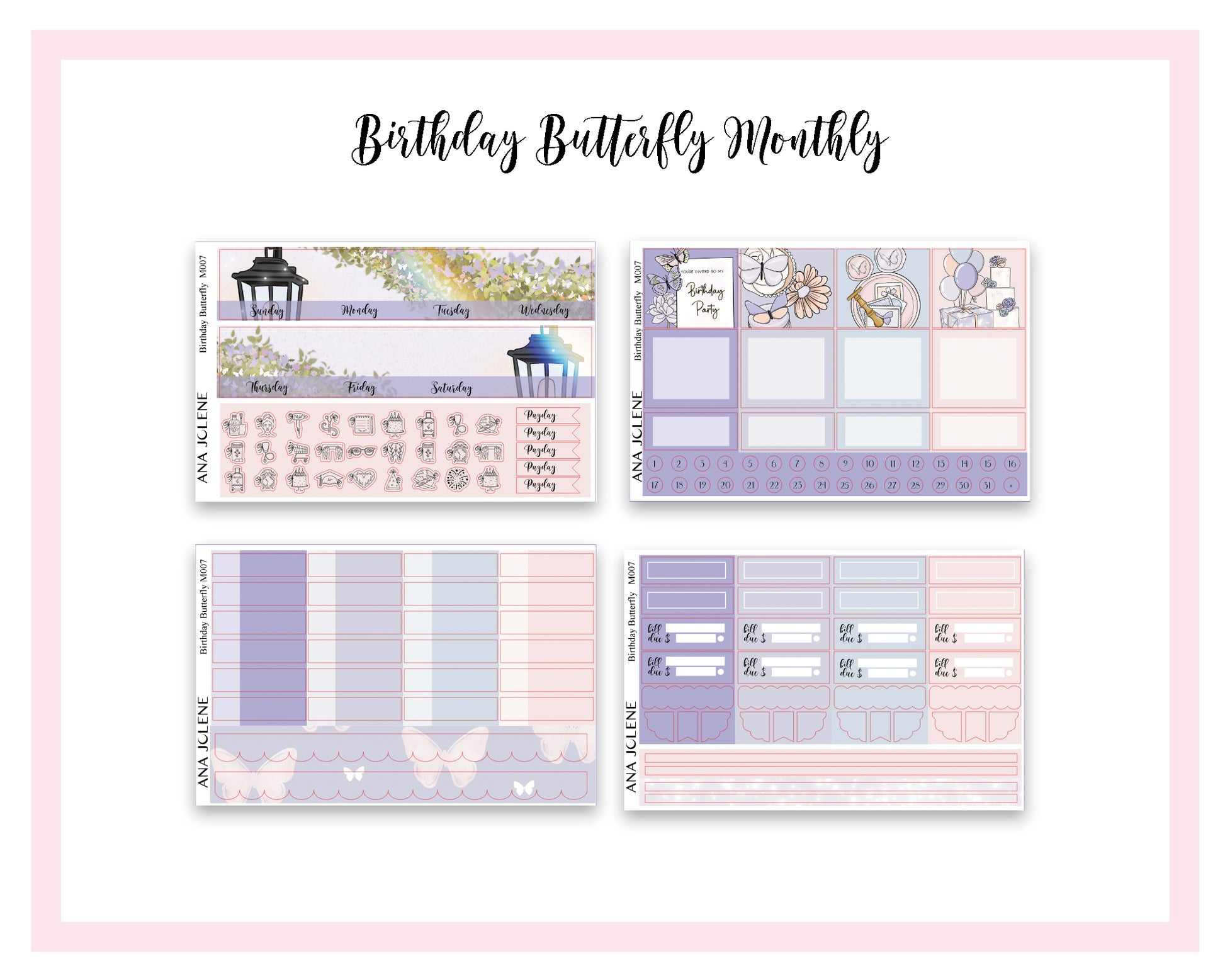 BIRTHDAY BUTTERFLY Monthly/Budget Planner Sticker Kit (A5 Wide)
