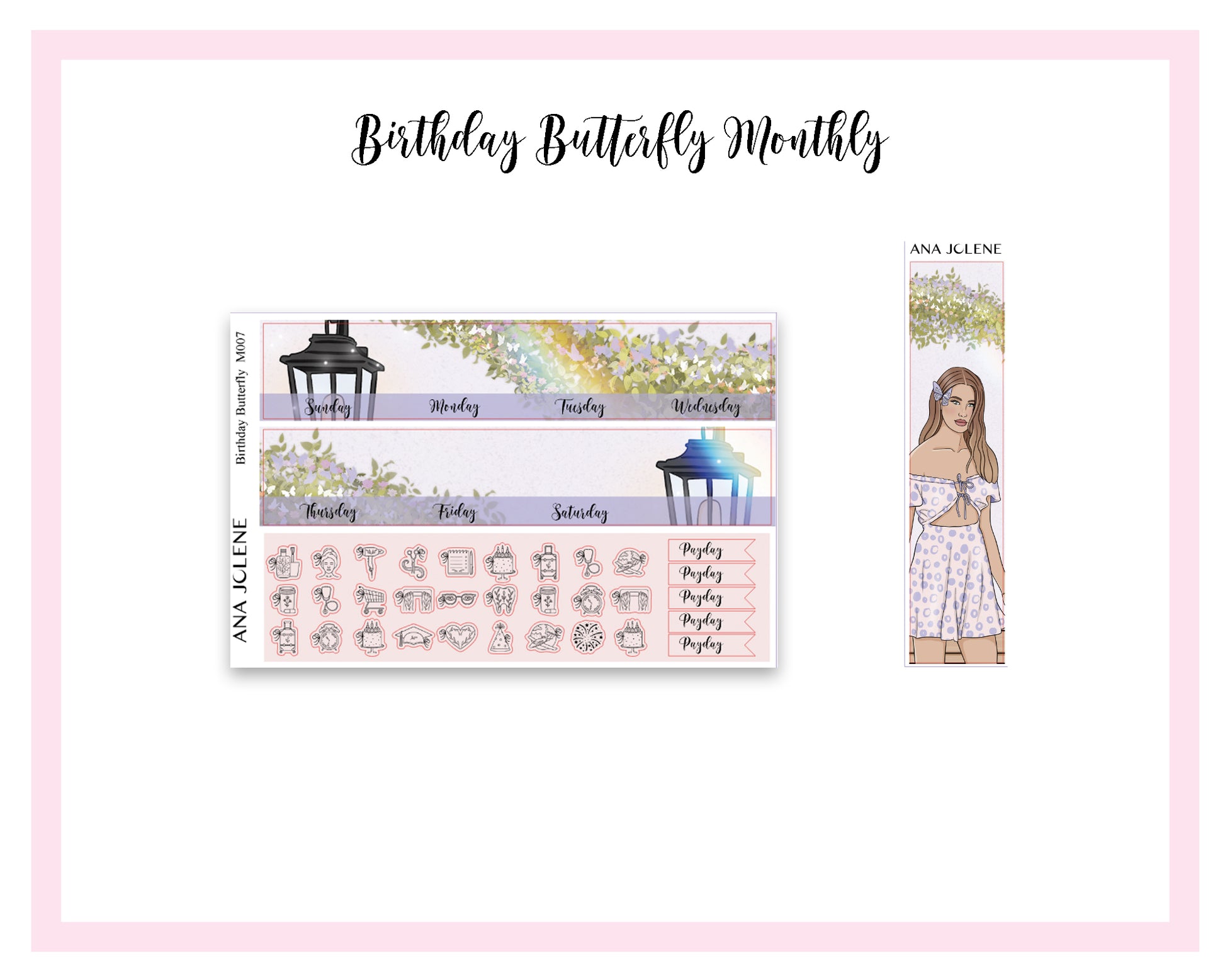 BIRTHDAY BUTTERFLY Monthly Planner Sticker Kit (A5Wide)