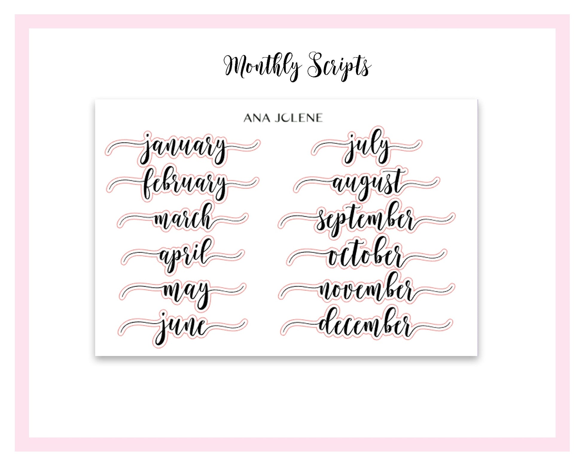 This kit has four pages plus an additional decorative sidebar. Can be used for ANY MONTH since they are not labeled. You can buy the monthly scripts separately.