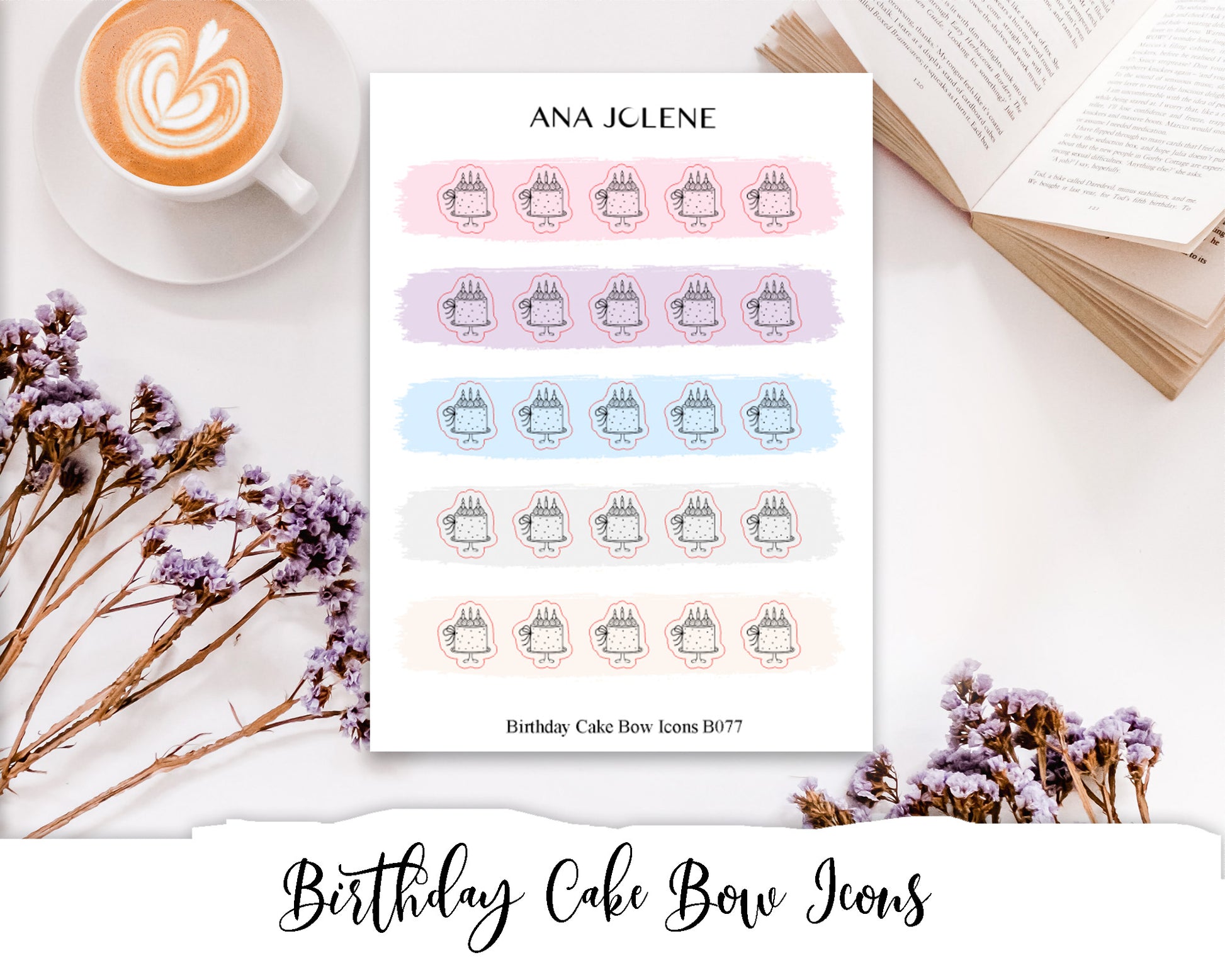 Includes one page of bow icons stickers of your choice for planners and bullet journals. Printed on permanent matte sticker paper. Icons come in five colors - light pink, light purple, light blue, light gray and light beige to match with all your planner spreads. Please see photos for what the icons will look like.