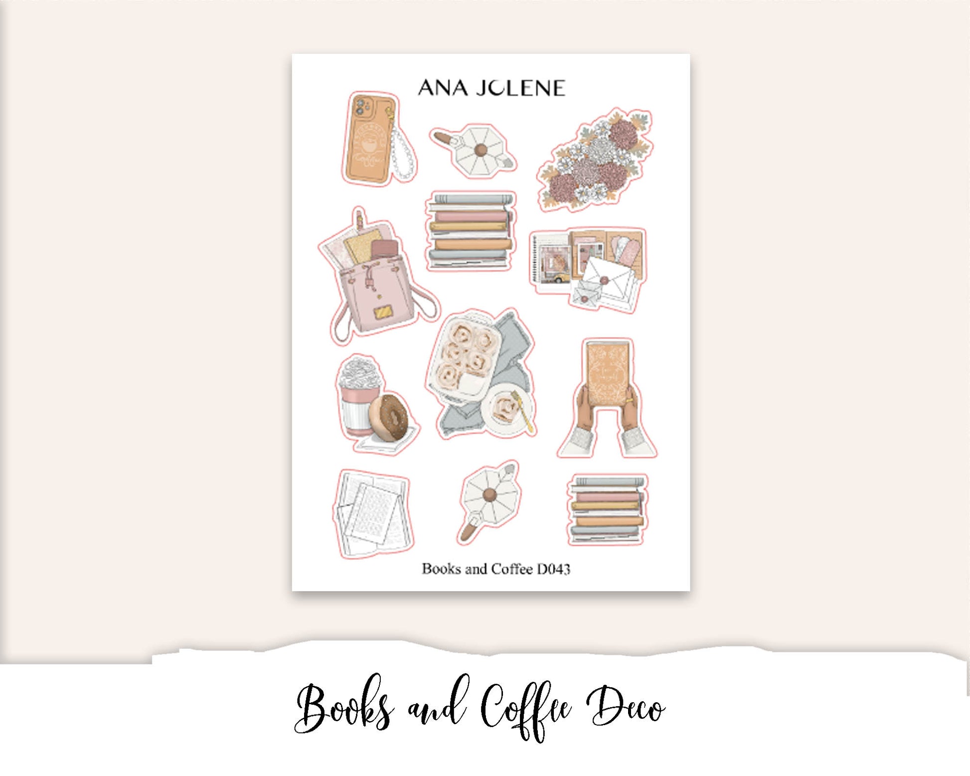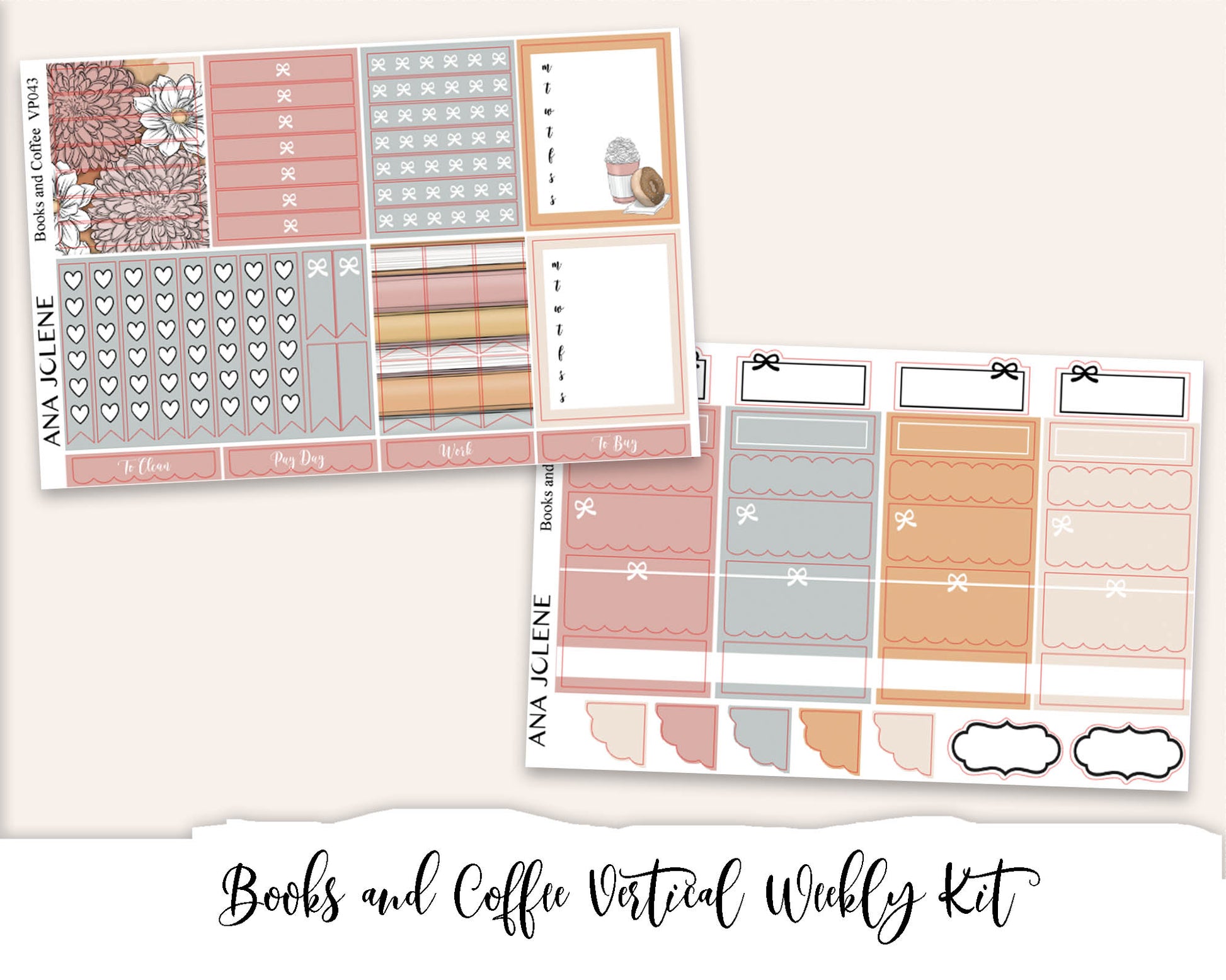 BOOKS AND COFFEE Planner Sticker Kit (Vertical Weekly)