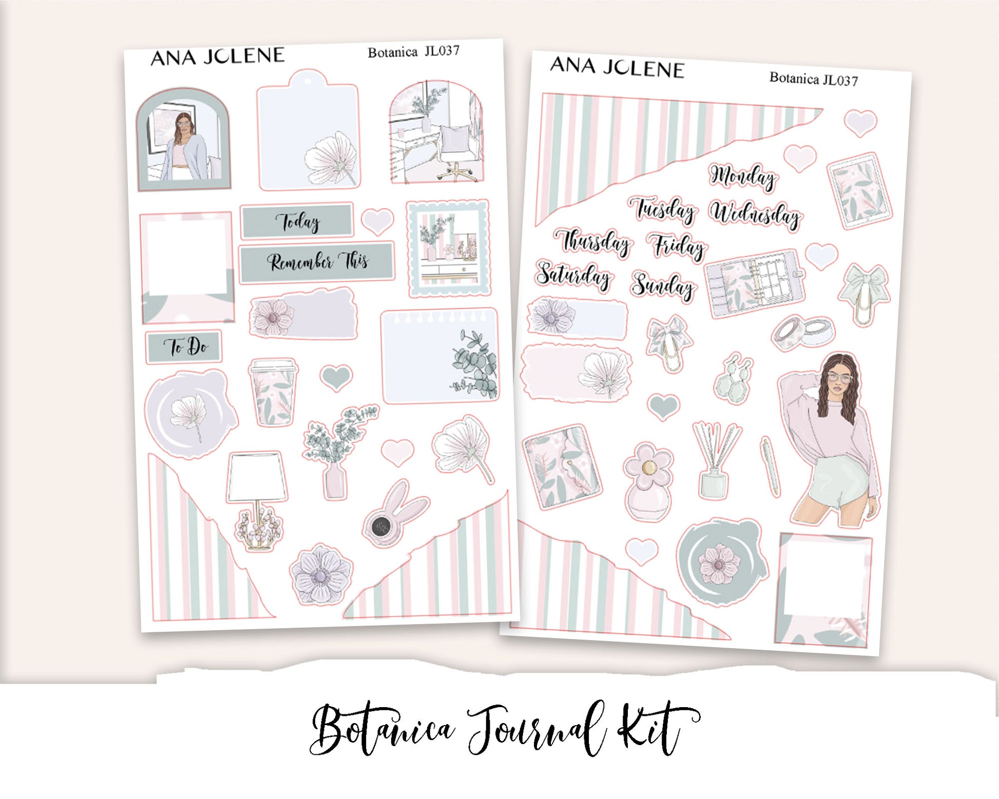 Planner Sticker Kit for bullet journals, Hobonichi and B6 Stalogy notebooks. This is a two page kit featuring medium sized ripped washi, swatches, deco elements and fashion girls, perfect to help you decorate your planners or journals.