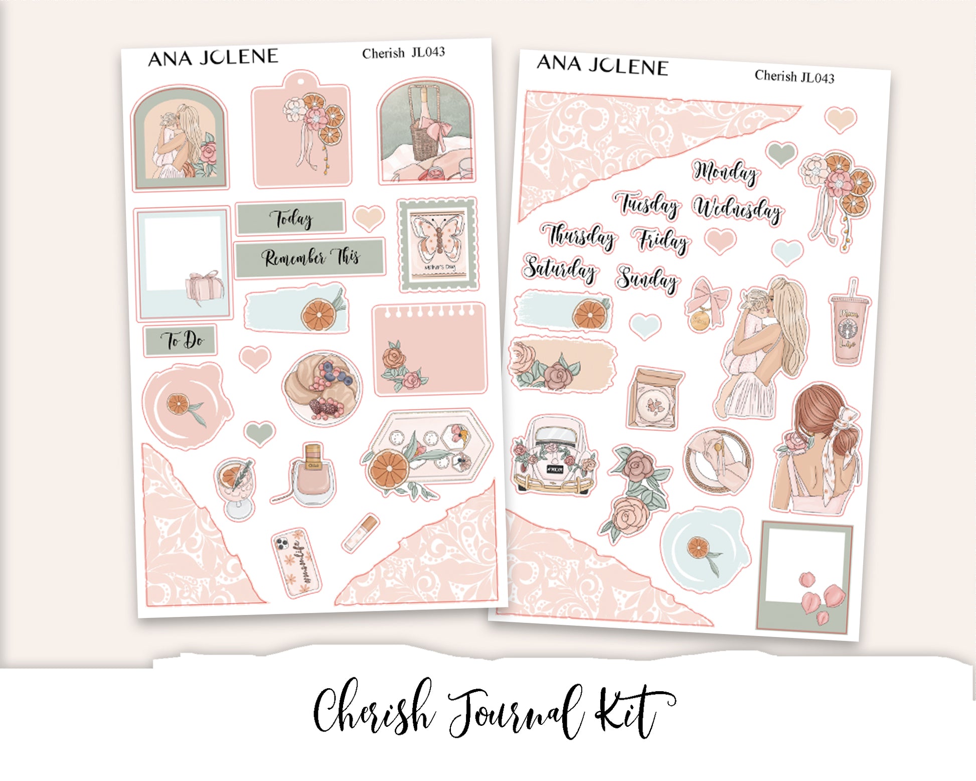 Planner Sticker Kit for bullet journals, Hobonichi and B6 Stalogy notebooks. This is a two page kit featuring medium sized ripped washi, swatches, deco elements and fashion girls, perfect to help you decorate your planners or journals.