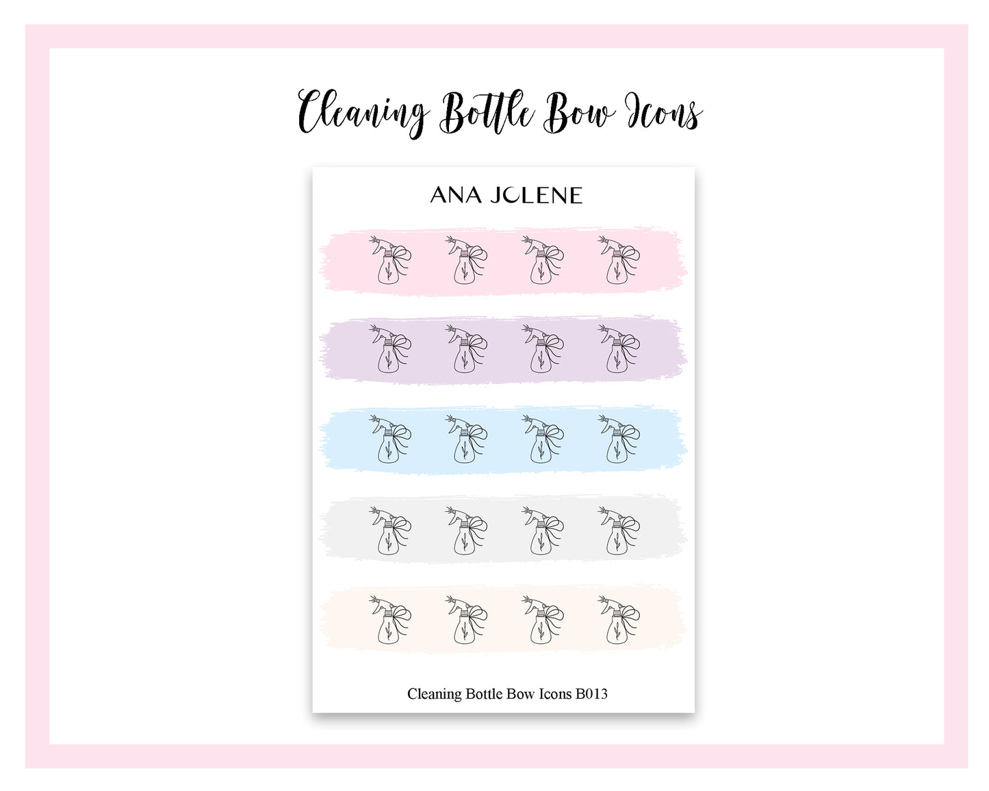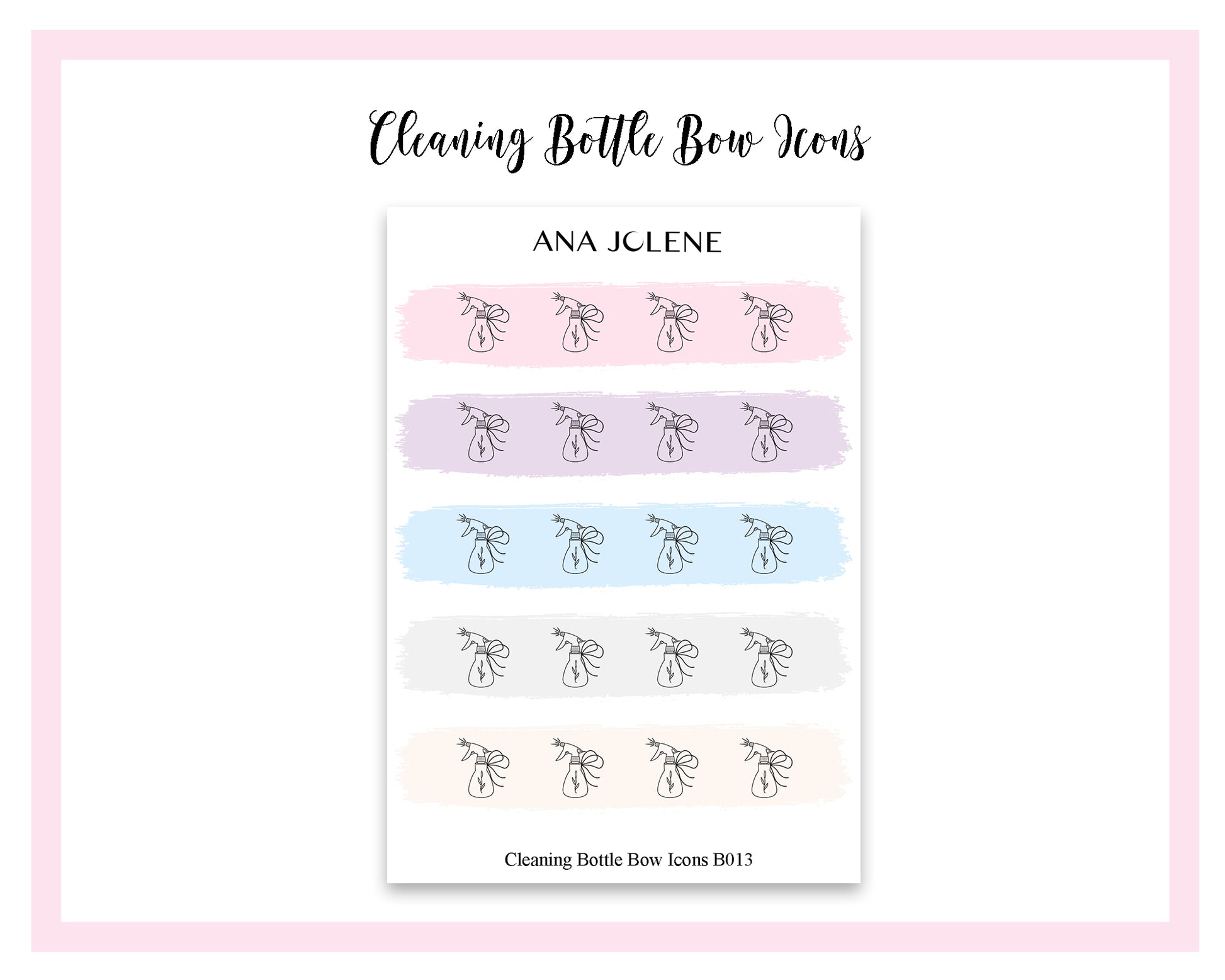 Cleaning Bottle Bow Icons - Minimal Line Art Bow Icons Stickers for Planners and Bullet Journal