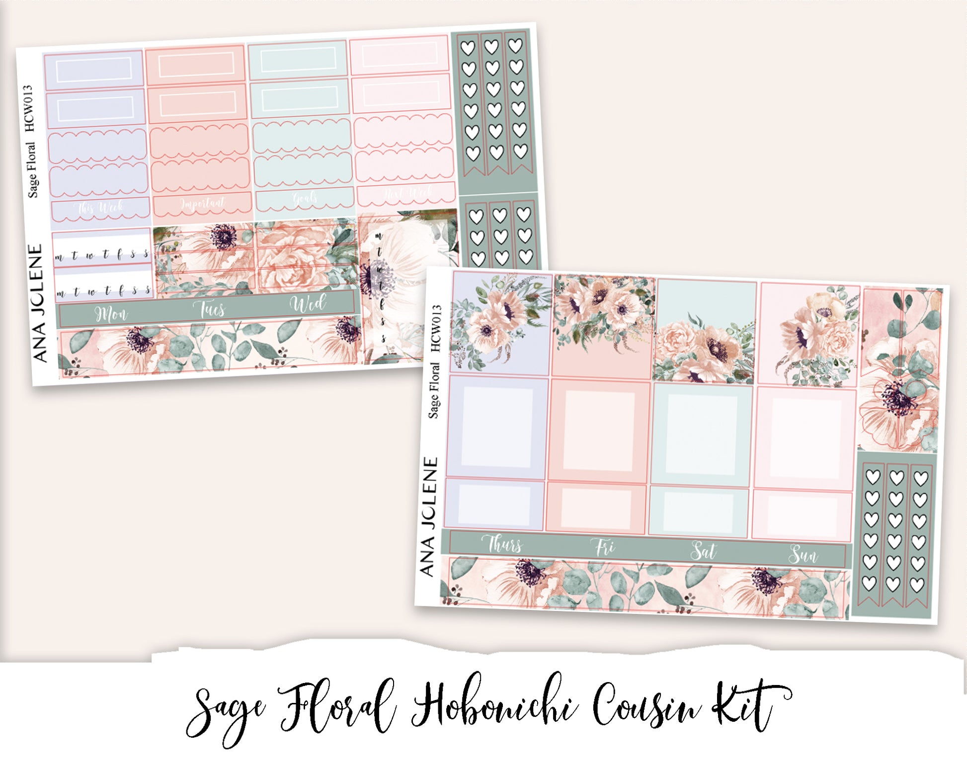SAGE FLORAL Hobonichi Cousin Weekly Planner Sticker Kit