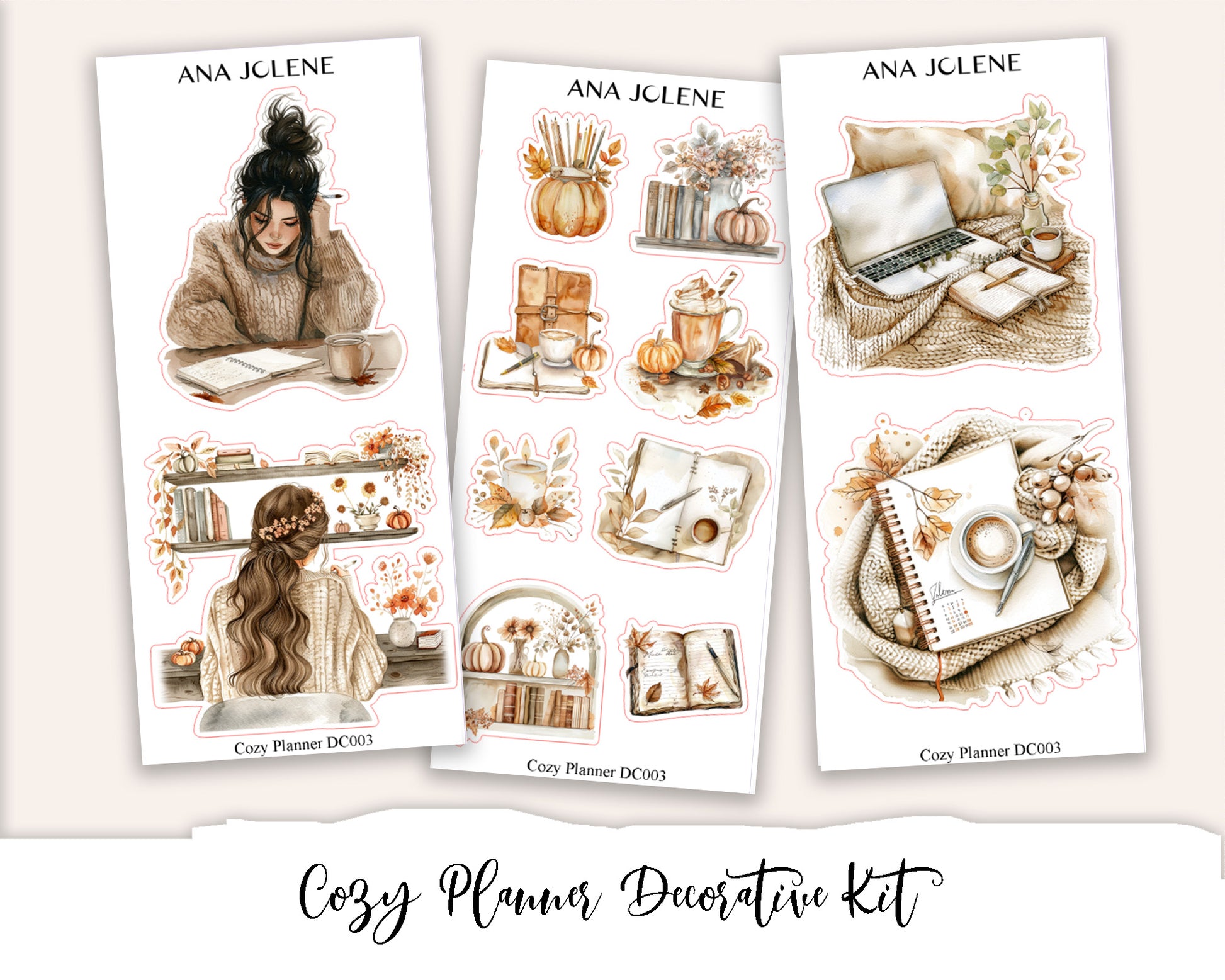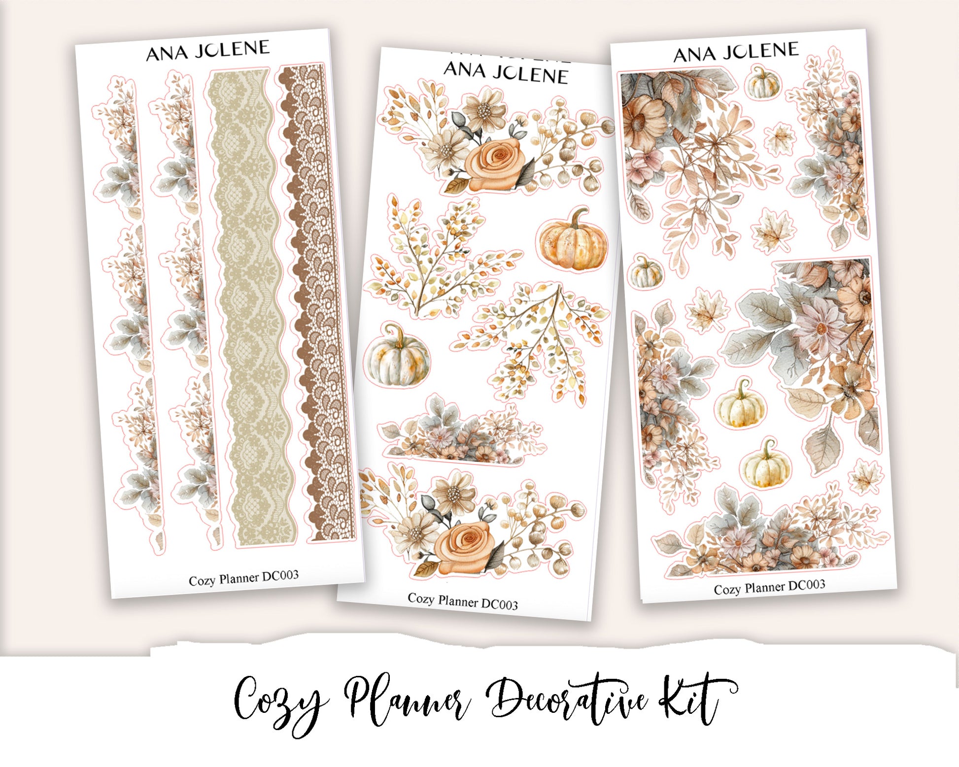 This is a 9 page kit comprising of decorative stickers to use in your planners and journals. Includes various elements such as floral and lace trim, floral bouquets, floral corners, fashion girls, decorative elements and scenes as well as doilies, alcohol ink swatches and collages. Compatible with ALL planners.