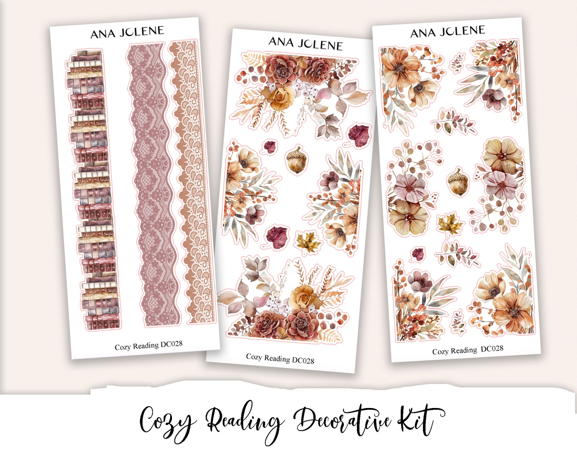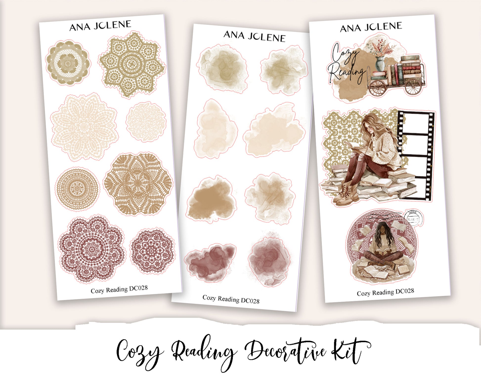 This is a 9 page kit comprising of decorative stickers to use in your planners and journals. Includes various elements such as floral and lace trim, floral bouquets, floral corners, fashion girls, decorative elements and scenes as well as doilies, alcohol ink swatches and collages. Compatible with ALL planners.