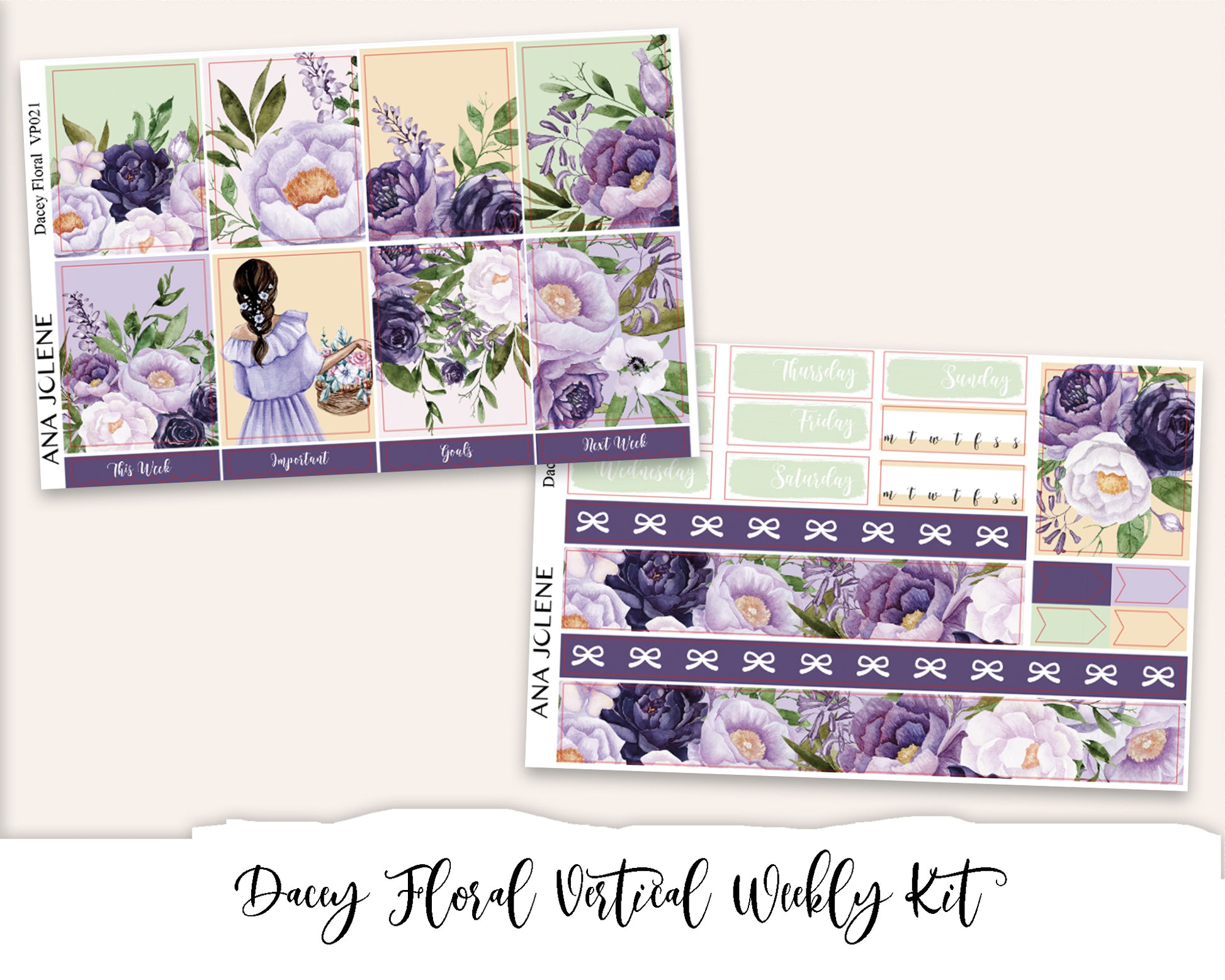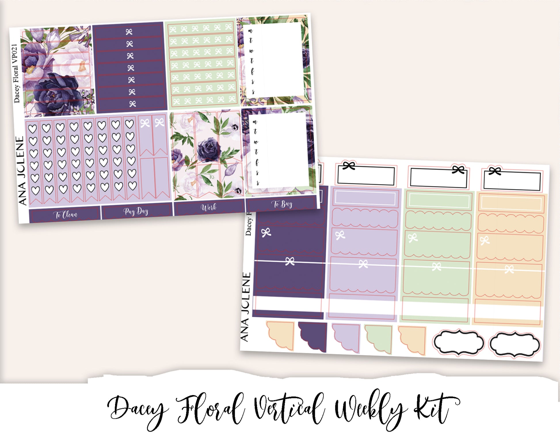 DACEY FLORAL Planner Sticker Kit (Vertical Weekly)