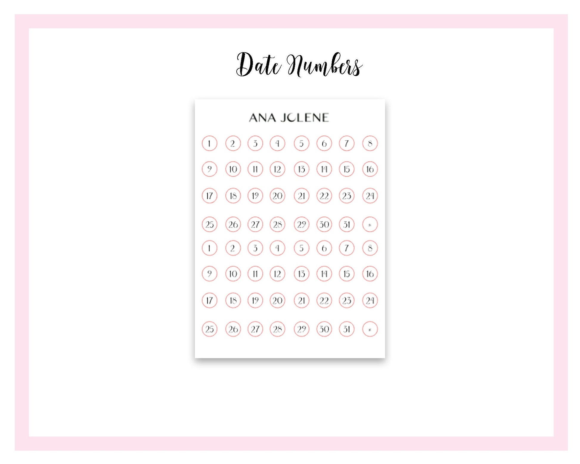 Includes one page of date number stickers for planners and bullet journals. Printed on permanent matte sticker paper with black ink.