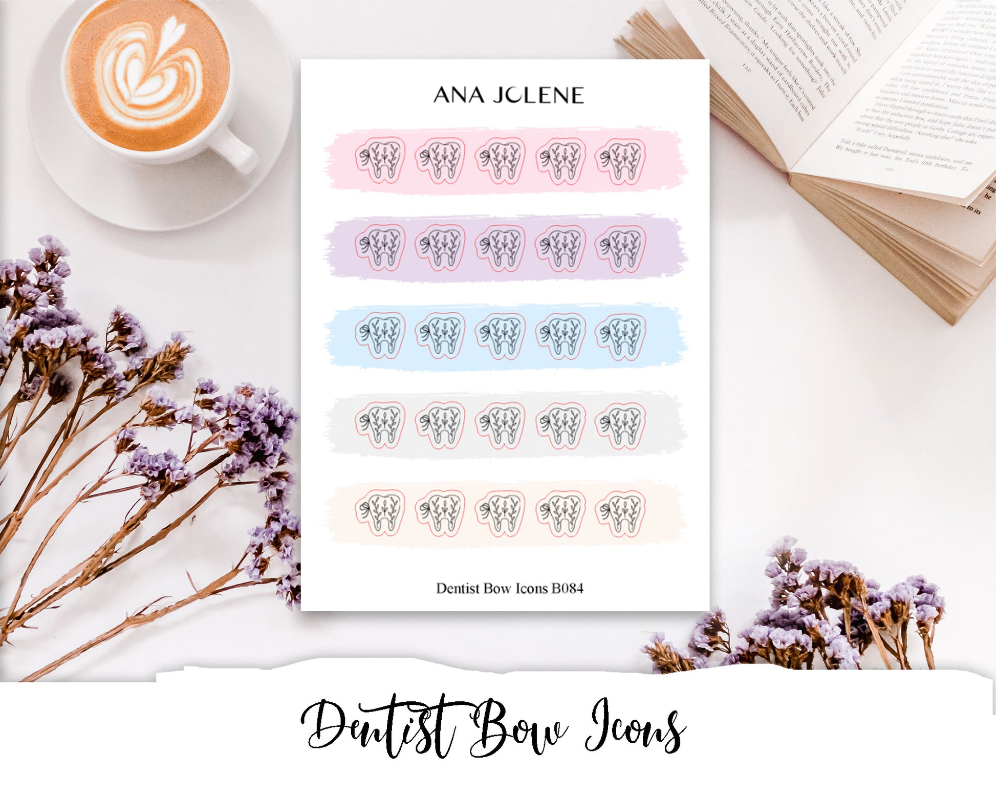 Dentist Bow Icons - Minimal Line Art Bow Icons Stickers for Planners and Bullet Journal