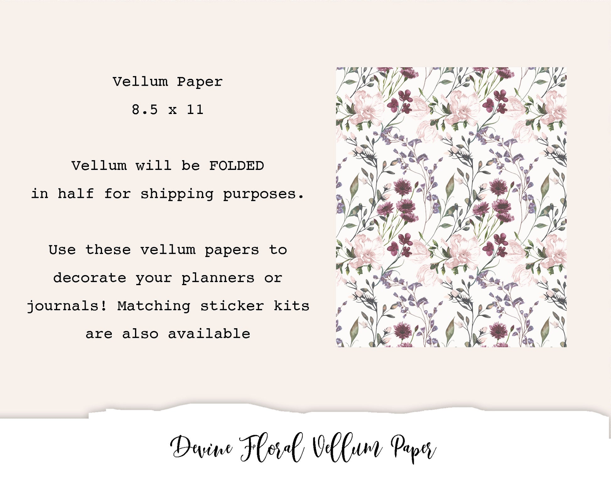 Please note that the vellum will be FOLDED for shipping purposes. Use in your planners and journals to decorate! Matching sticker kits are available too.
