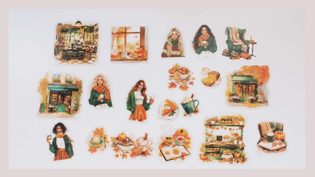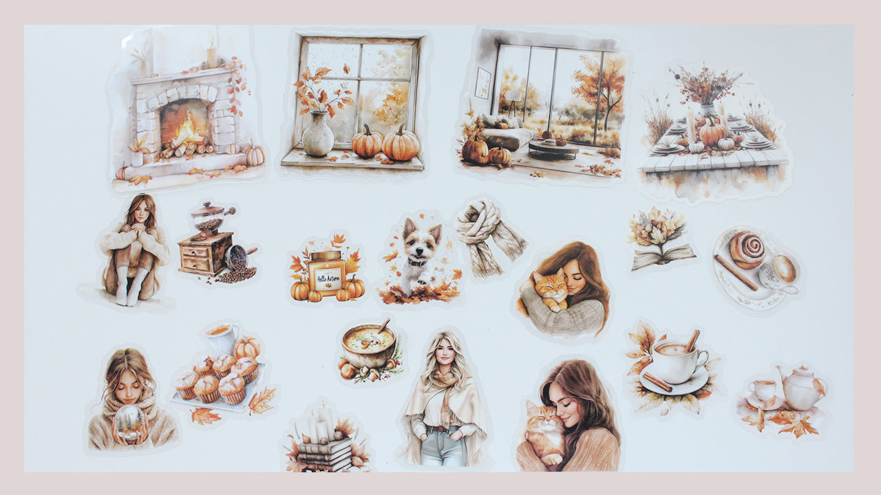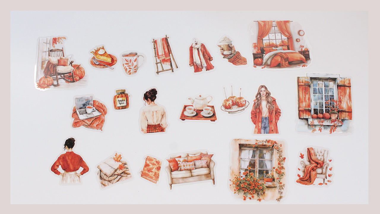 One grab bag of clear PET fall-style stickers. Use in your planning or journaling spreads!