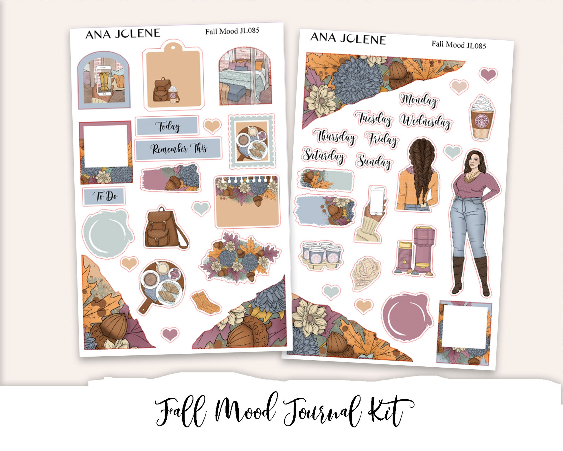 Planner Sticker Kit for bullet journals, Hobonichi and B6 Stalogy notebooks. This is a two page kit featuring medium sized ripped washi, swatches, deco elements and fashion girls, perfect to help you decorate your planners or journals.