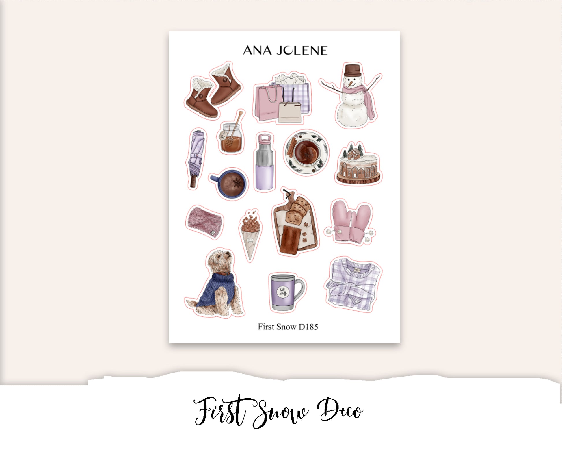 Includes one page of deco/journaling stickers of your choice for planners and bullet journals. Printed on permanent white matte sticker paper or transparent matte.
