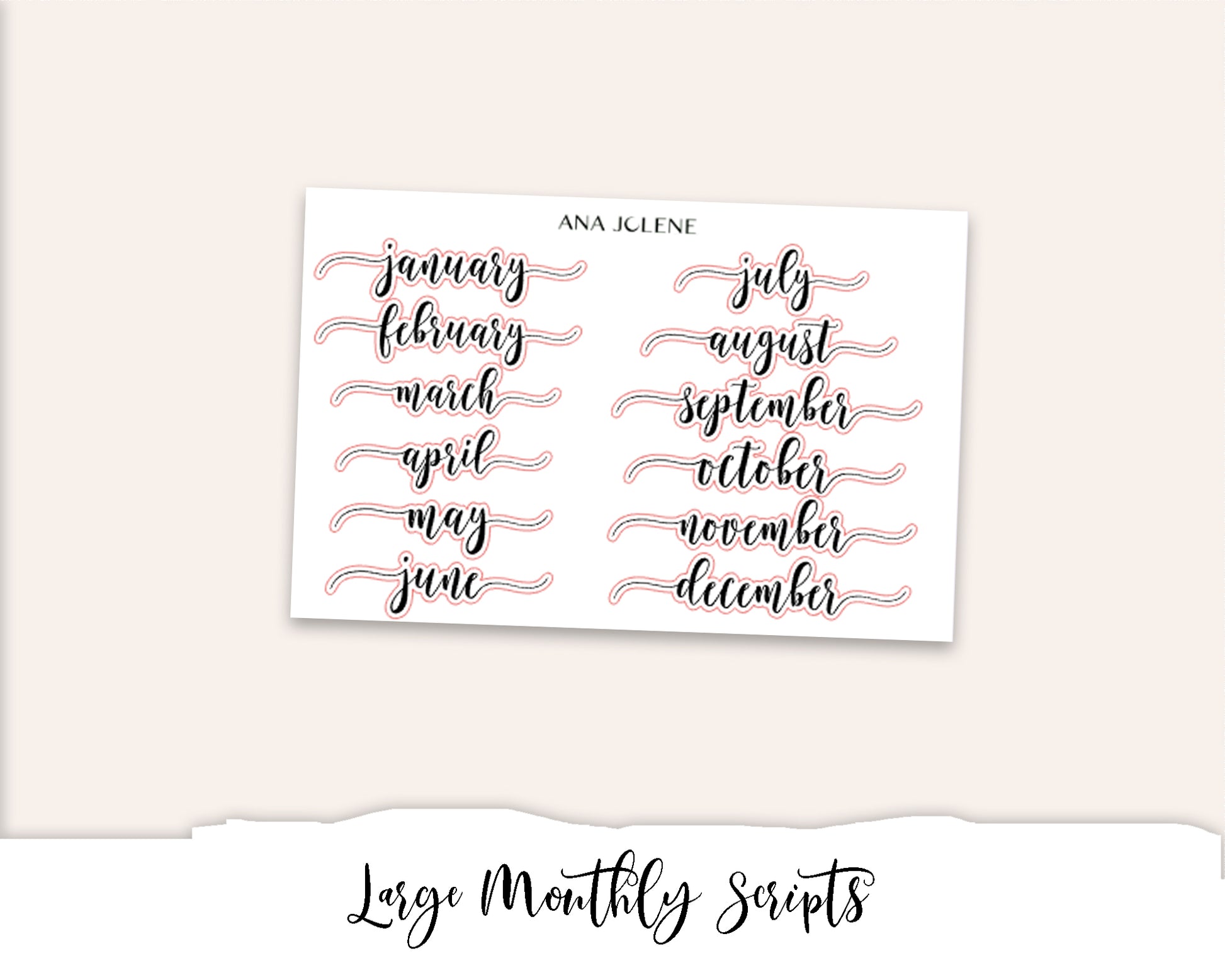 This kit has four pages plus an additional decorative sidebar. Can be used for ANY MONTH since they are not labeled. You can buy the monthly scripts separately.