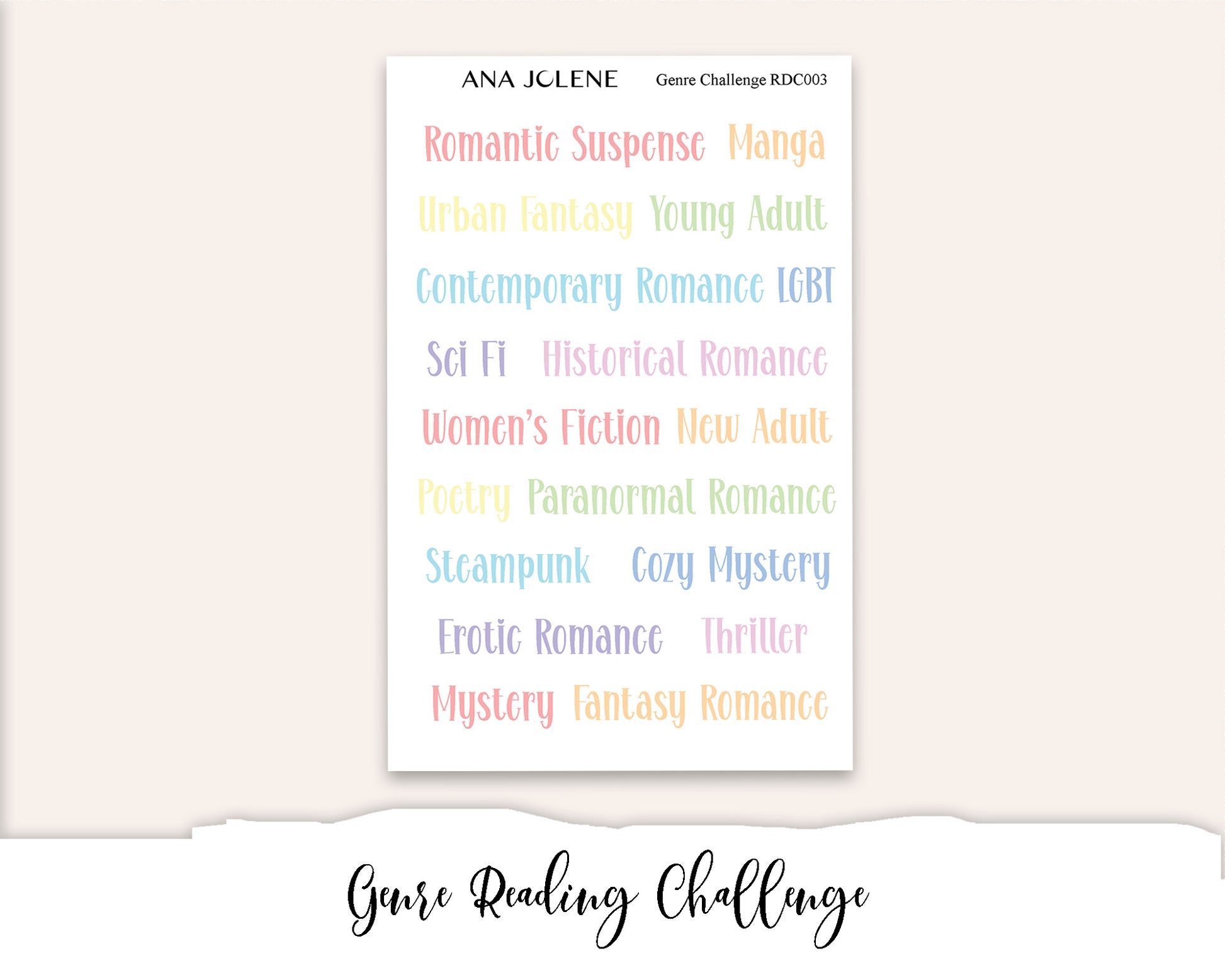Track your reading progress this year with these cute genre stickers. Read one book (or more) for each genre to complete this reading challenge!