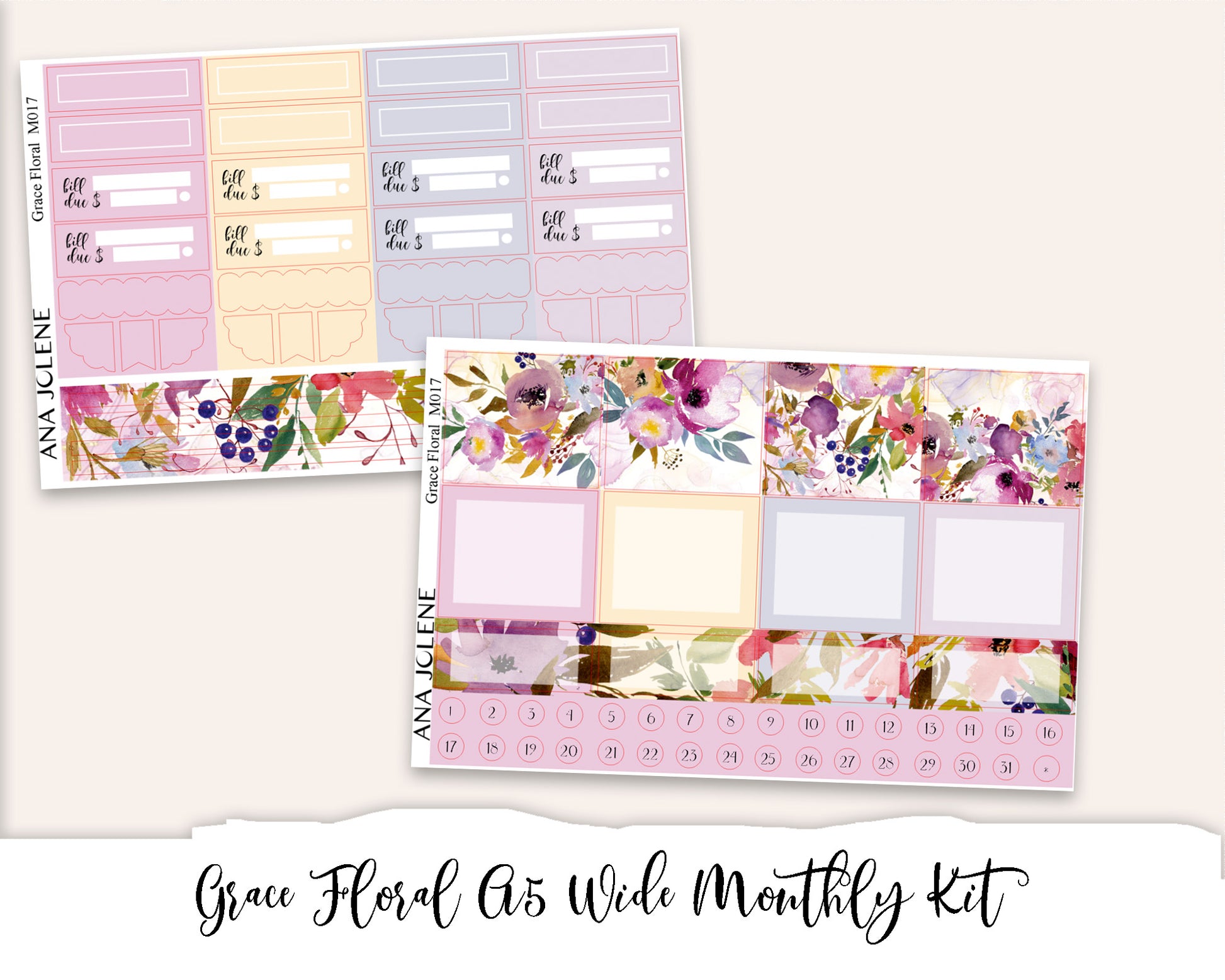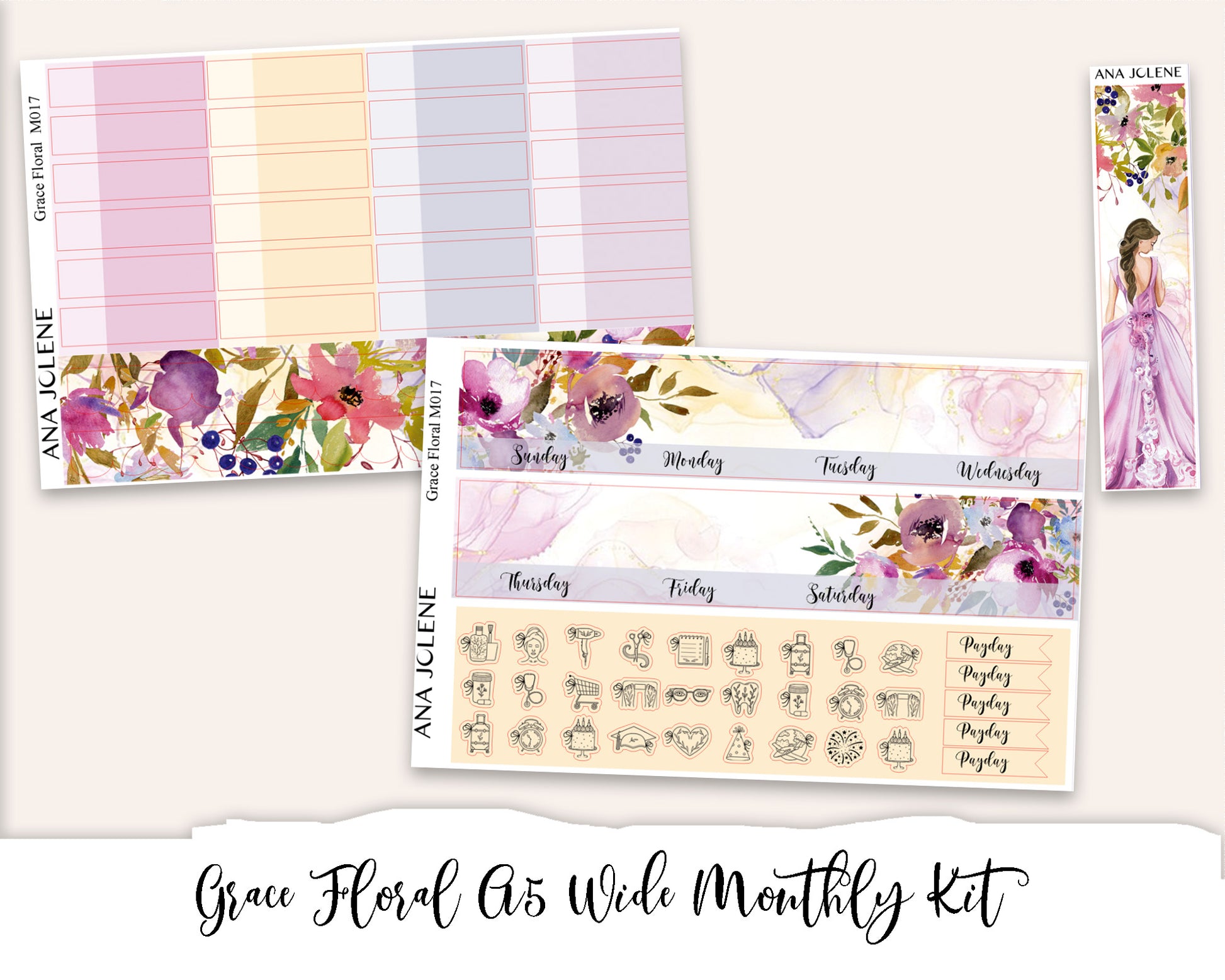 GRACE FLORAL Monthly/Budget Planner Sticker Kit (A5 Wide)