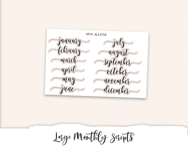 This kit has four pages plus an additional decorative sidebar. Can be used for ANY MONTH since they are not labeled. You can buy the monthly scripts separately.