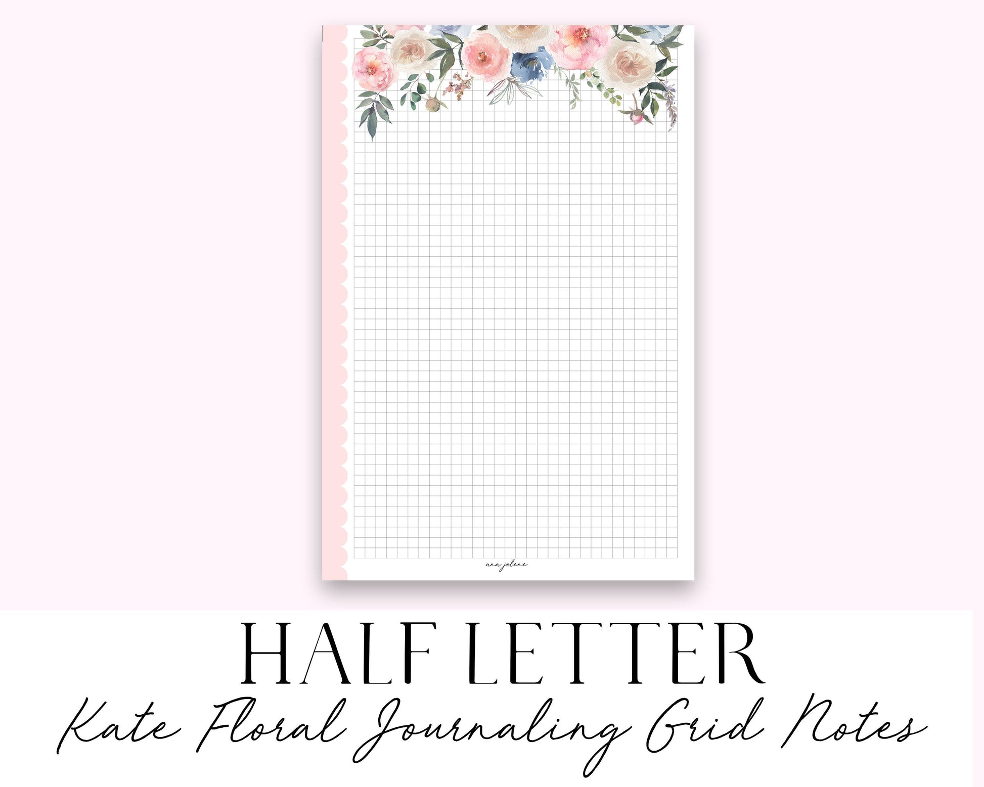 Half Letter Kate Floral Journaling Grid Notes (Junior Discbound/A5 Rings) Printable