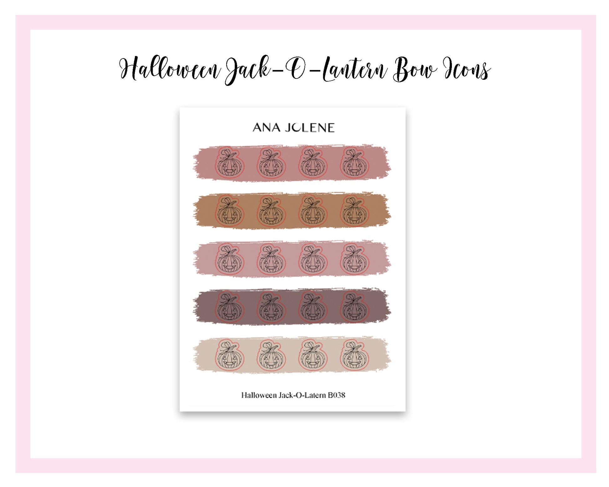 Halloween Jack-O-Lantern Bow Icons - Minimal Line Art Bow Icons Stickers for Planners and Bullet Journal