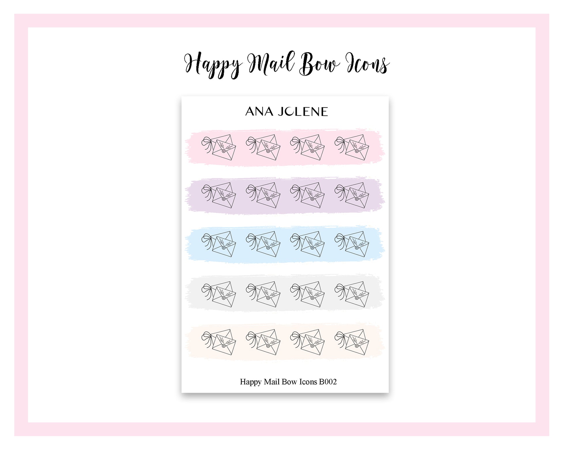 Happy Mail Bow Icons - Minimal Line Art Bow Icons Stickers for Planners and Bullet Journal