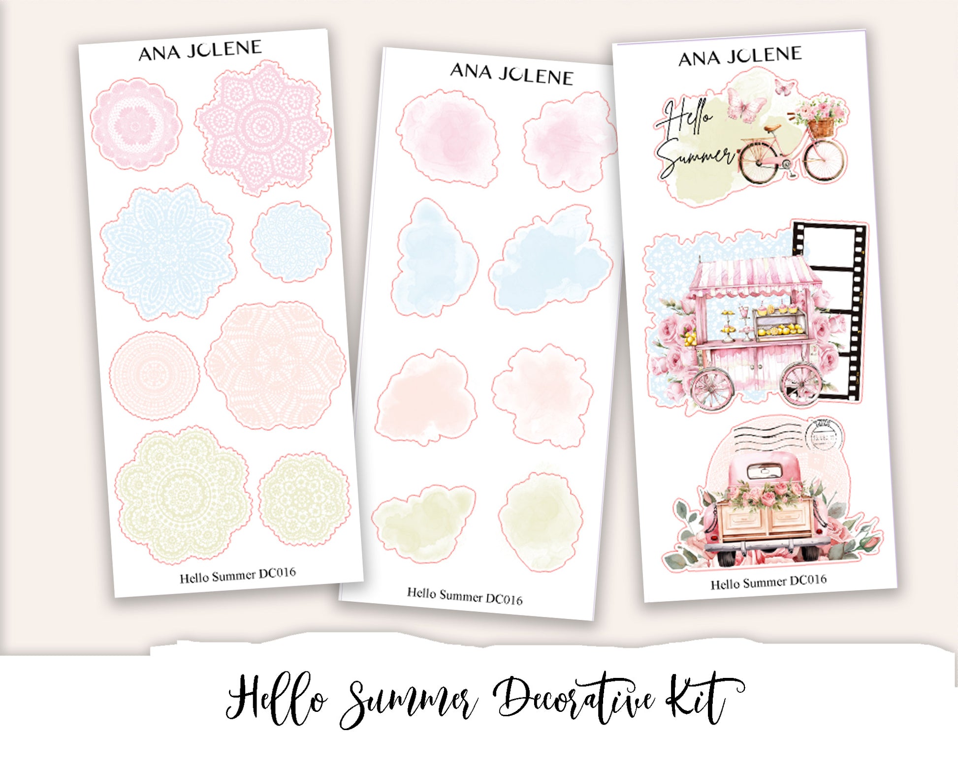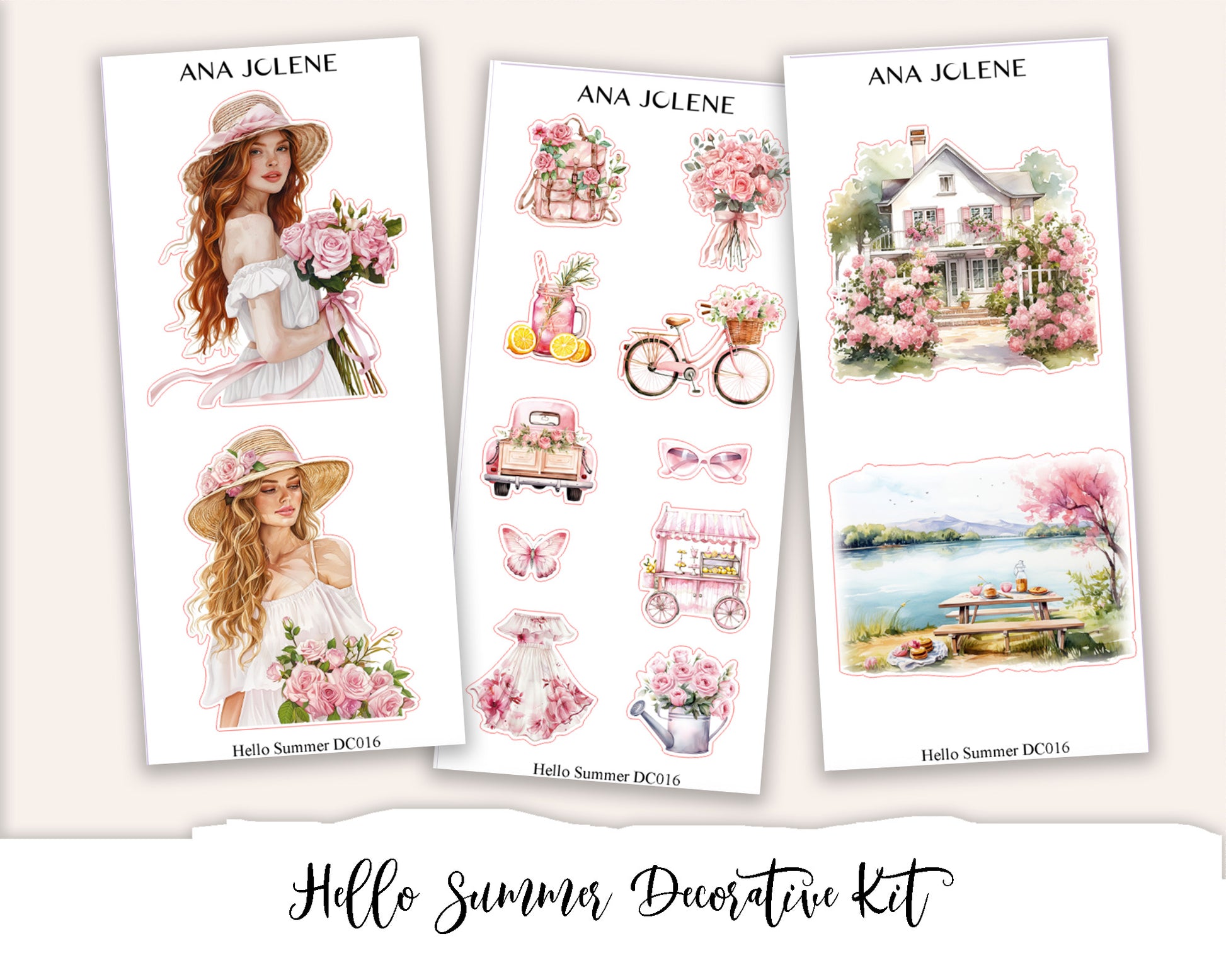 This is a 9 page kit comprising of decorative stickers to use in your planners and journals. Includes various elements such as floral and lace trim, floral bouquets, floral corners, fashion girls, decorative elements and scenes as well as doilies, alcohol ink swatches and collages. Compatible with ALL planners.
