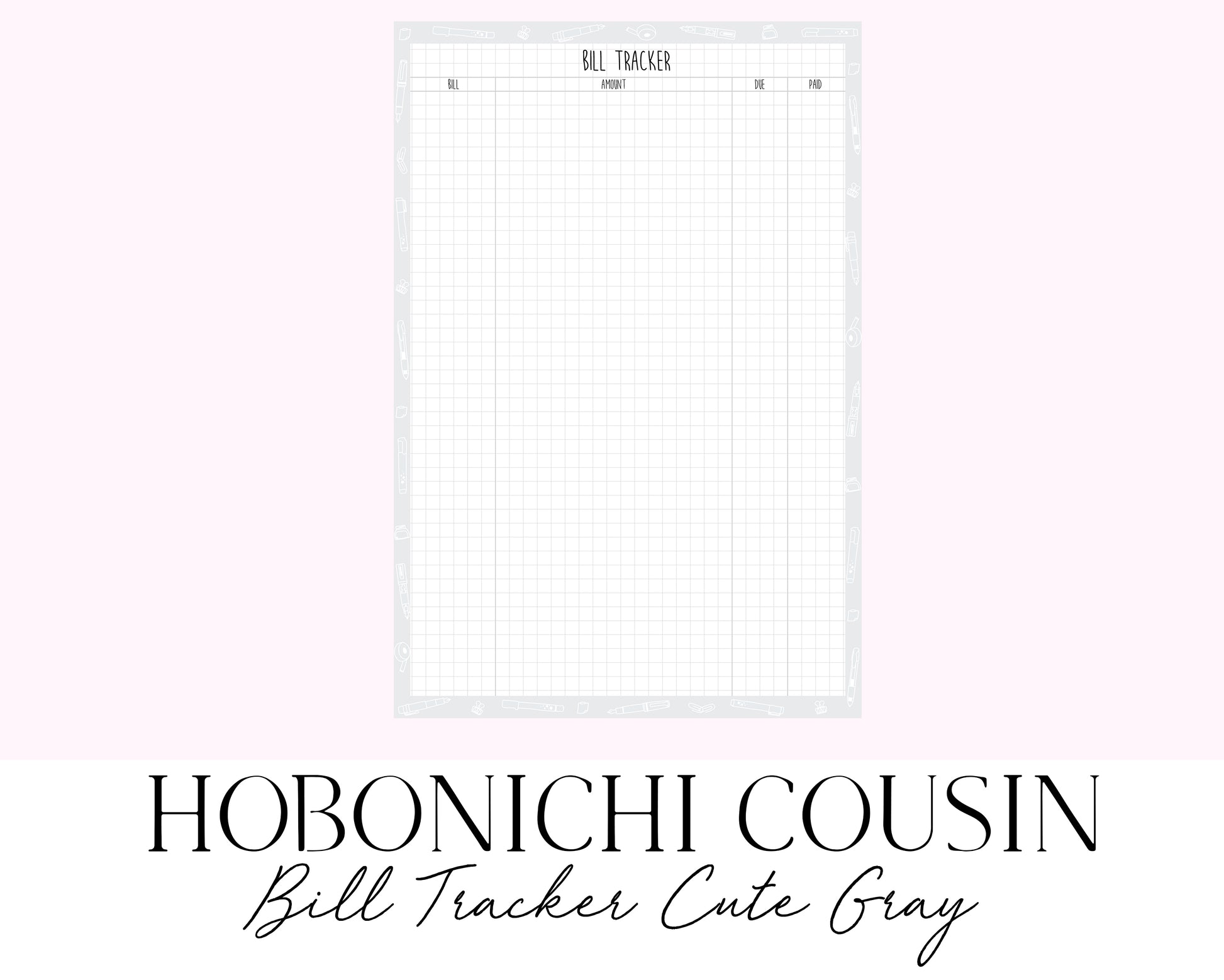Hobonichi Cousin A5 Bill Tracker Cute Gray (Full Page Printable Stickers)