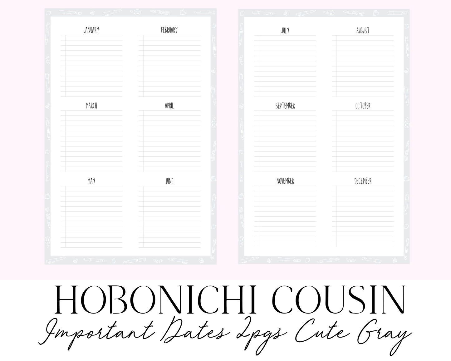 Hobonichi Cousin A5 Important Dates 2pgs Cute Gray (Full Page Printable Stickers)