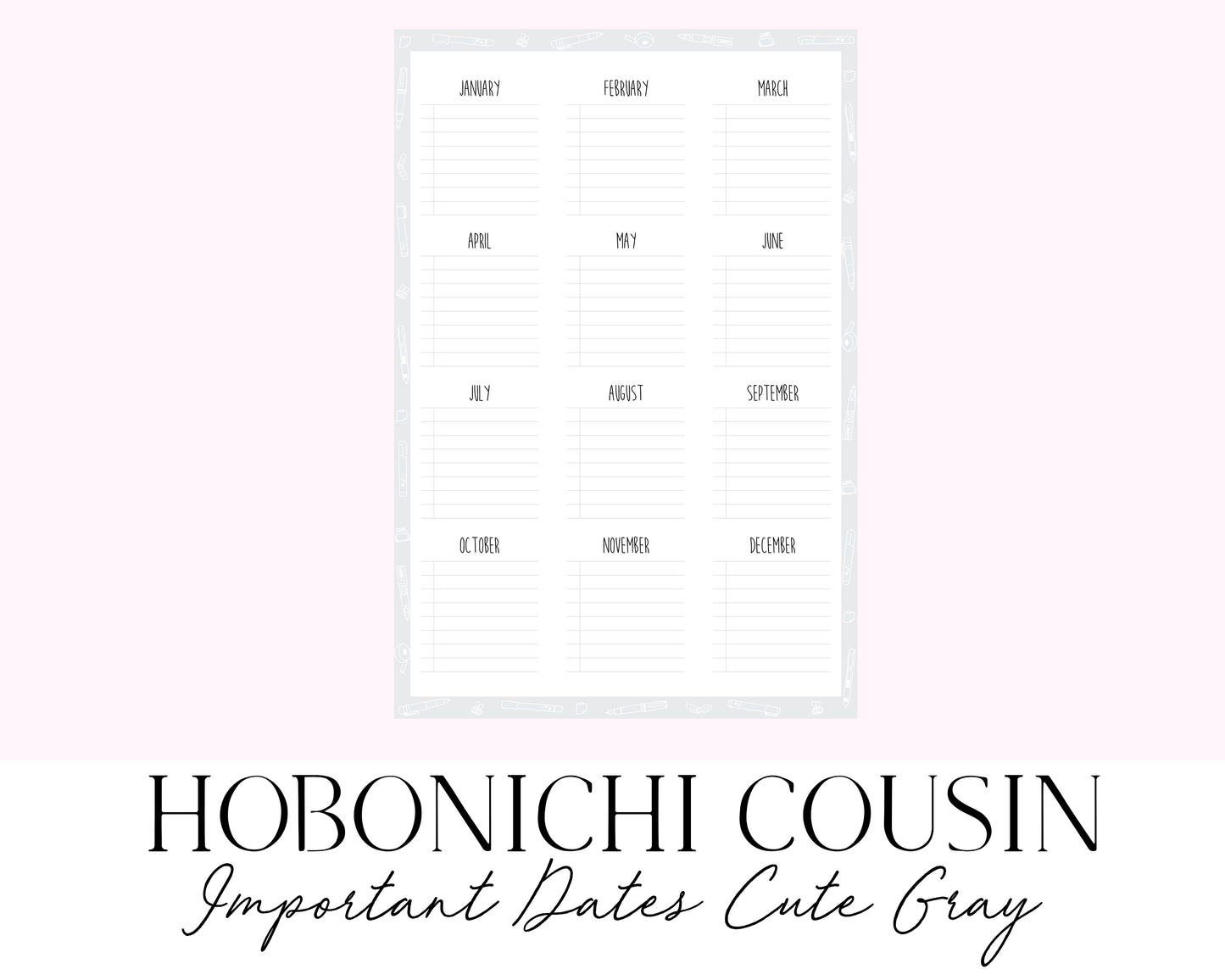 Hobonichi Cousin A5 Important Dates Cute Gray (Full Page Printable Stickers)