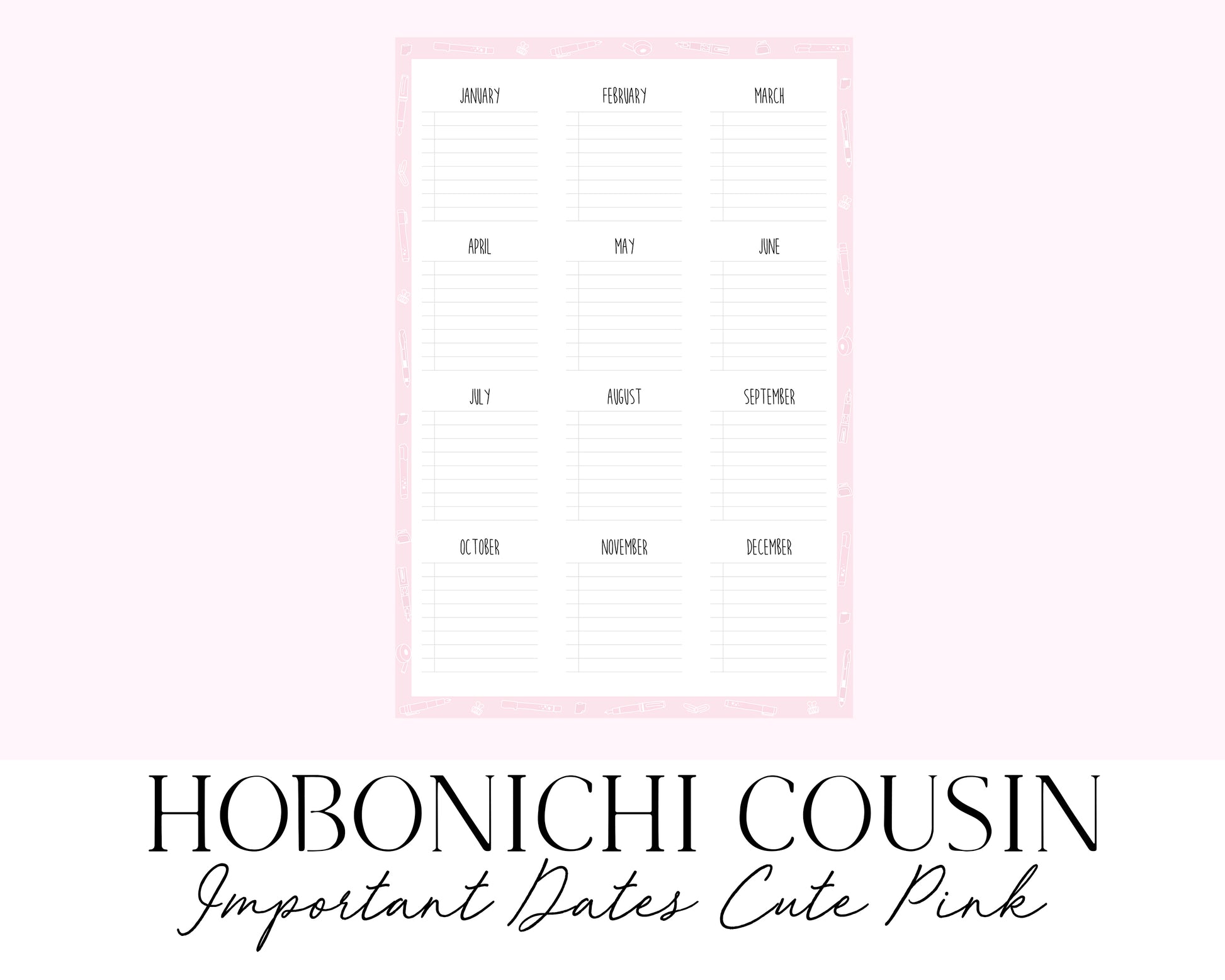 Hobonichi Cousin A5 Important Dates Cute Pink (Full Page Printable Stickers)