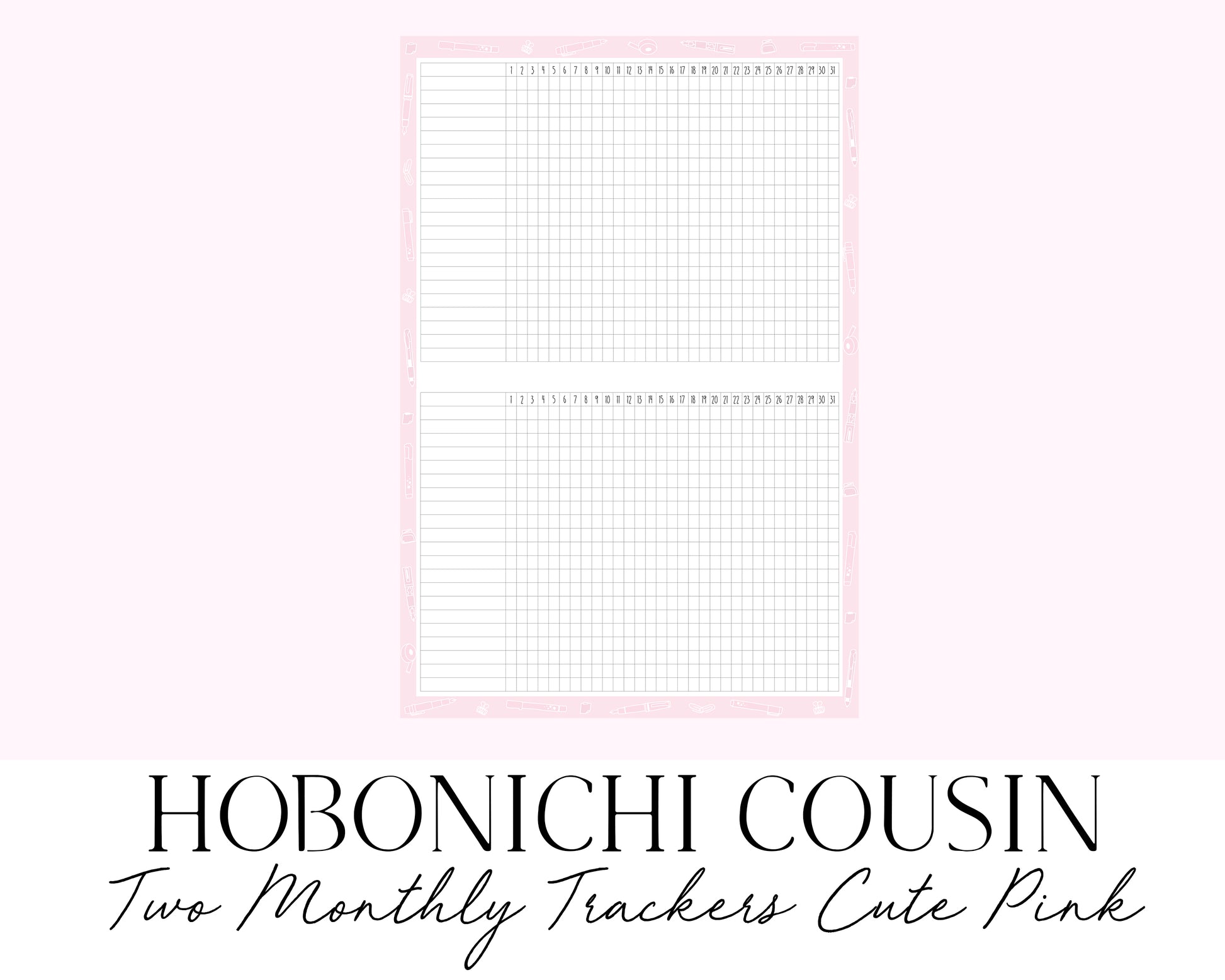 Hobonichi Cousin A5 Monthly Habit Tracker Cute Pink 2 per Page (Full Page Printable Stickers)