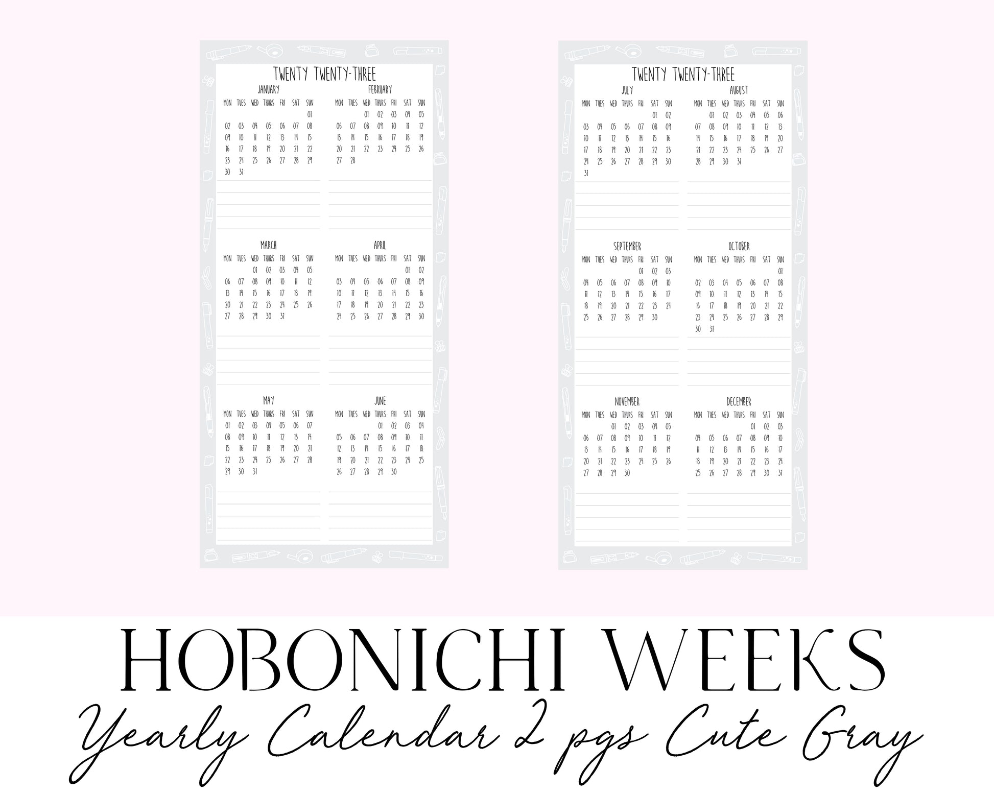 Hobonichi Weeks 2023 Yearly Calendar 2pgs Cute Gray (Full Page Printable Stickers)